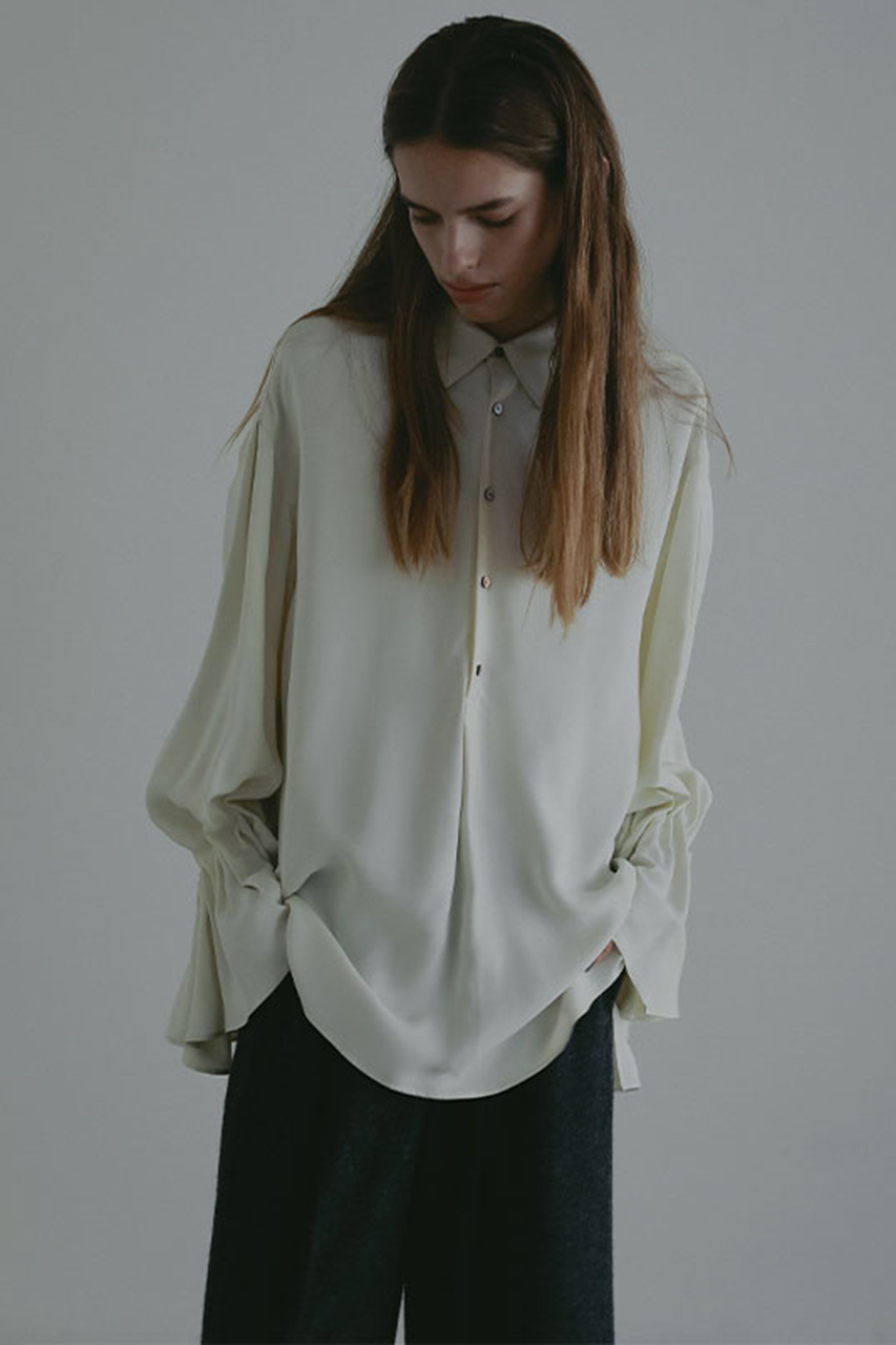 落ち感の美しさが際立つ、キャンディースリーブデザインのシルキーシャツ。
