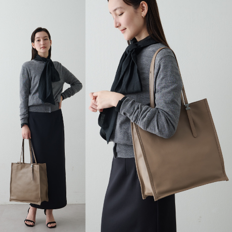 リラクシーな着心地とラグジュアリーを両立させたニットセットアップ。上質なメリノウールは素肌に着てもチクチクしにくく、快適な着心地。フロントに深く入ったワンピースのスリットが動くたびに揺らめき、佇まいを印象的なものに。複数のグレートーンを重ねることで新鮮な表情が生まれます。