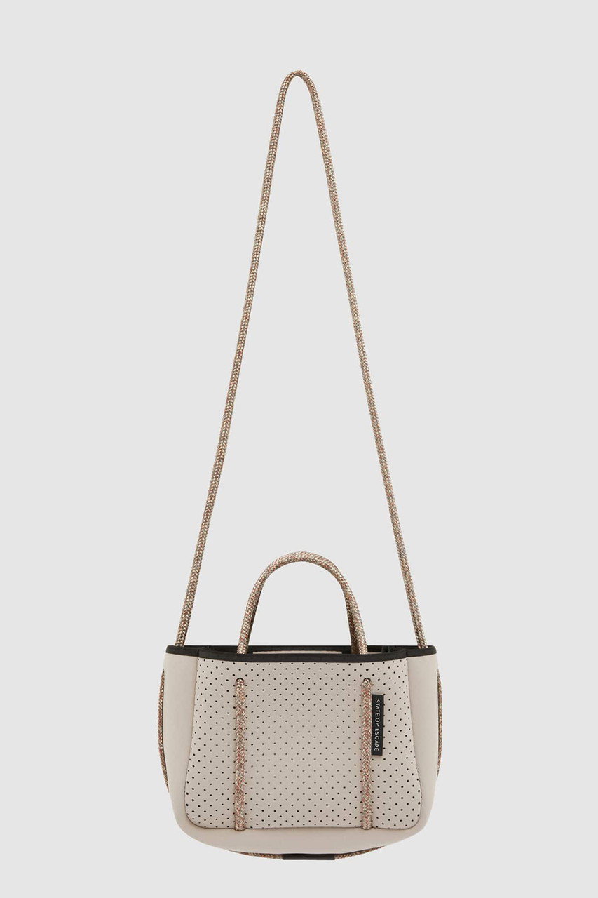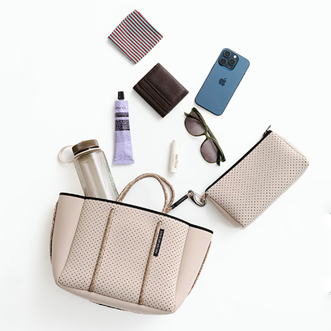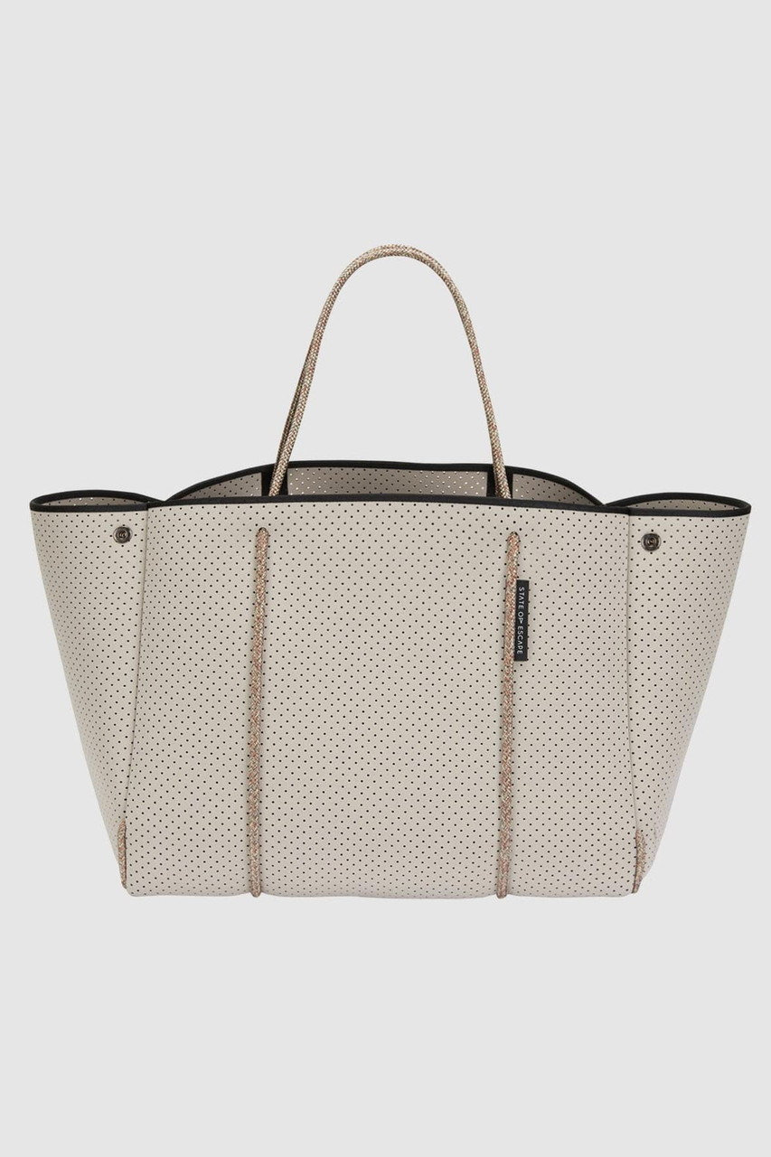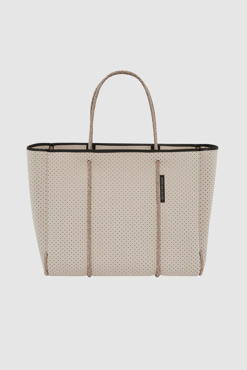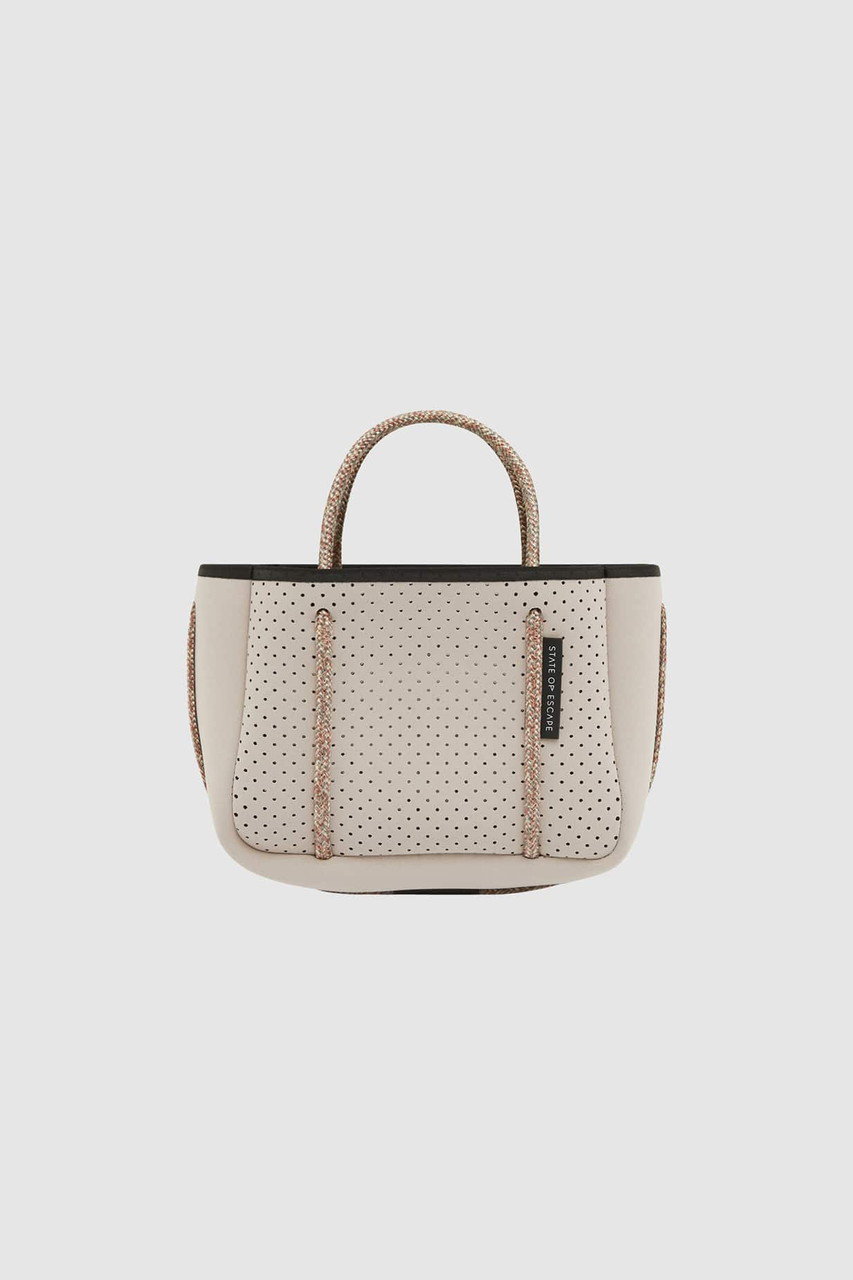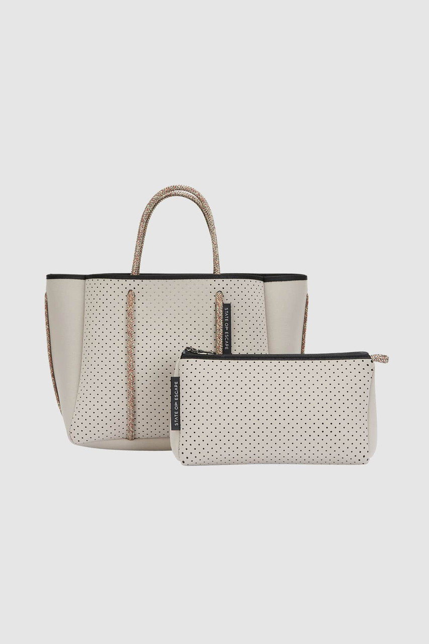 「ステート オブ エスケープ」を象徴する“エスケープ コレクション”は、パンチング加工を施した軽やかな合成ゴム素材を使用したブランドアイコンとして愛され続けているシリーズ。シグネチャーの“エスケープ トート”を中心に、4つのサイズバリエーションをラインナップ。日常使いからレジャー、ワークシーンまで、ライフスタイルに合わせて自在に選べるのも魅力です。ご自宅で手洗いできるイージーケア仕様は、これからの季節にうれしいポイント!
