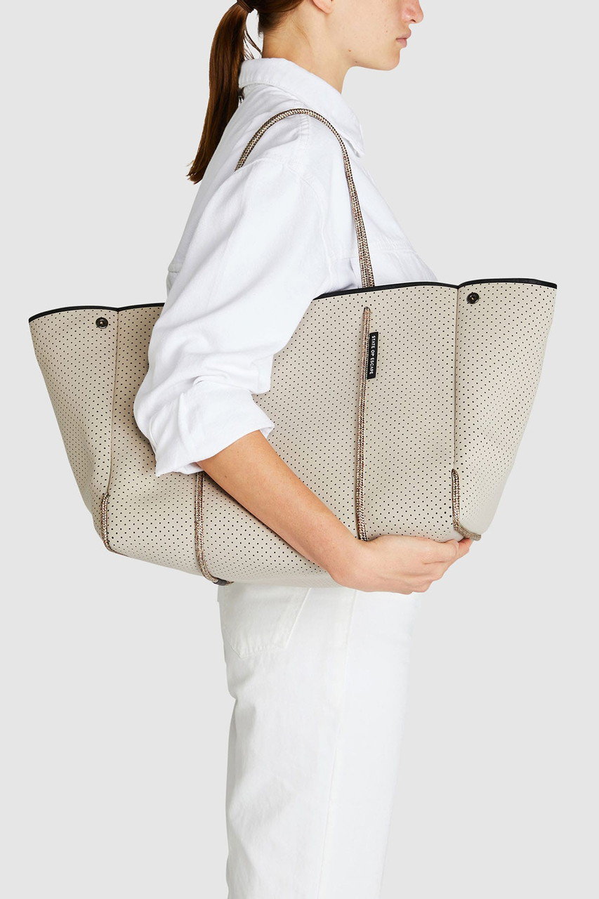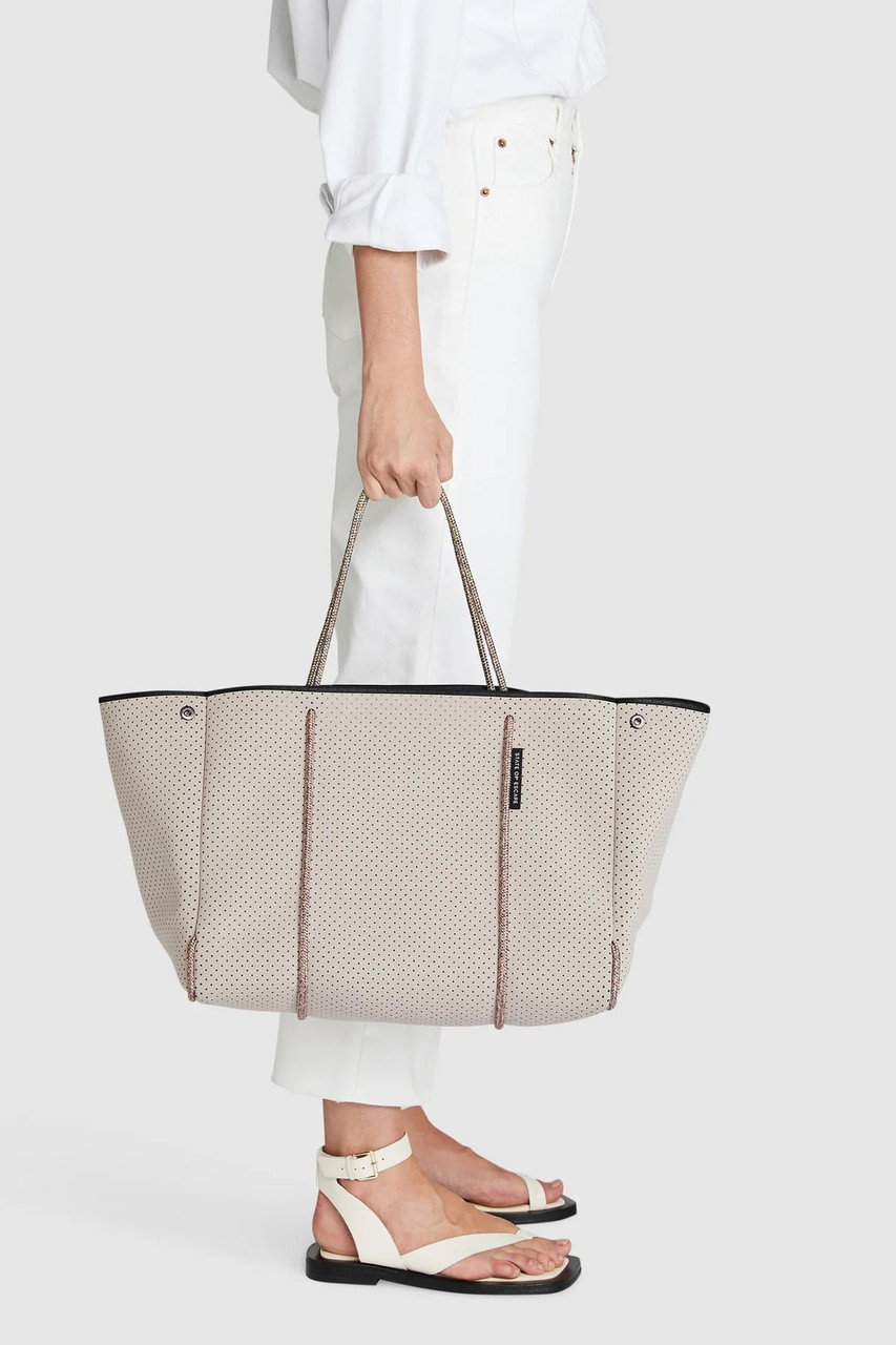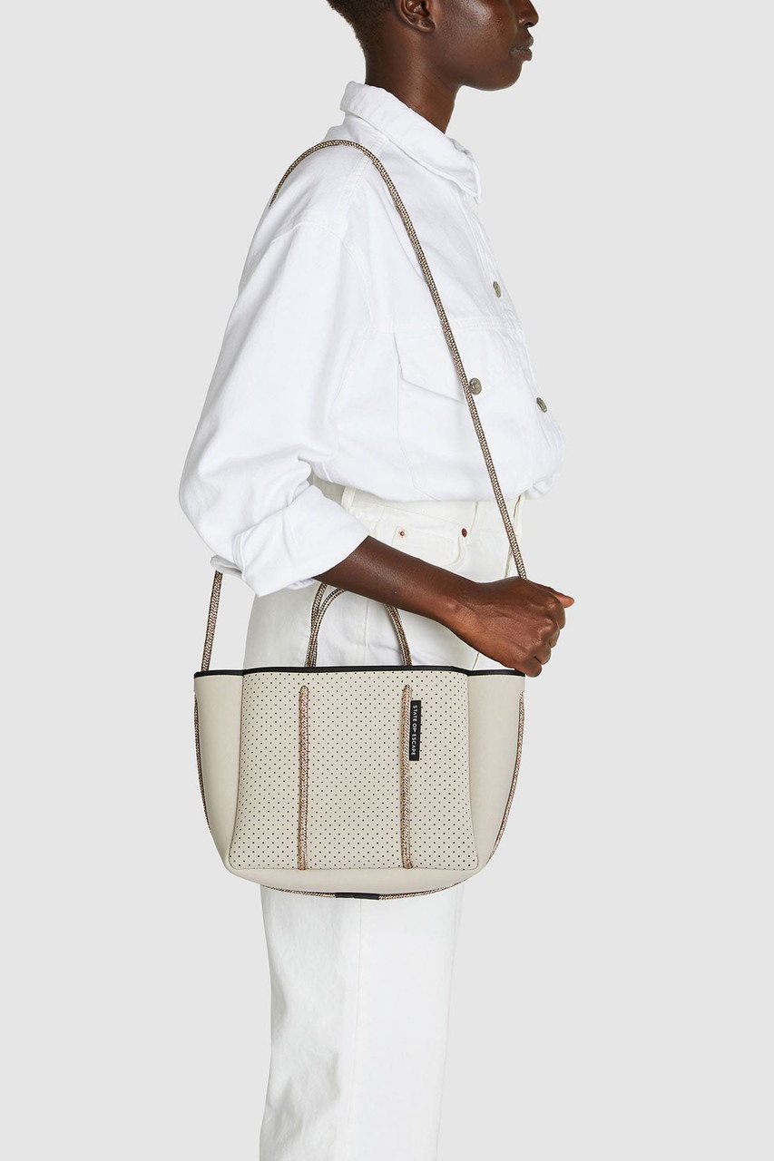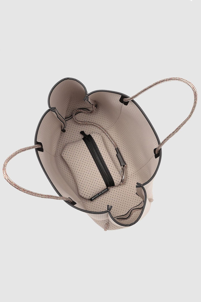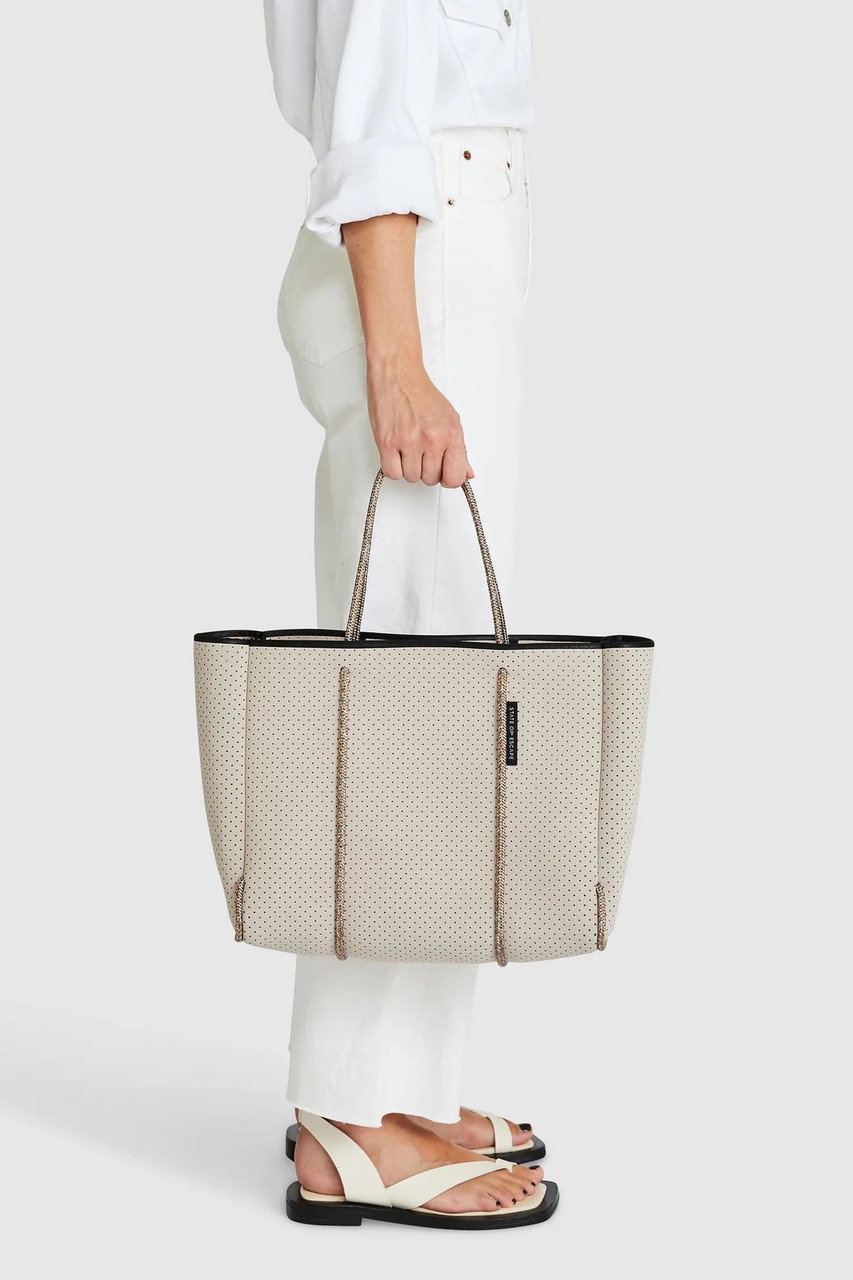 「ステート オブ エスケープ」を象徴する“エスケープ コレクション”は、パンチング加工を施した軽やかな合成ゴム素材を使用したブランドアイコンとして愛され続けているシリーズ。シグネチャーの“エスケープ トート”を中心に、4つのサイズバリエーションをラインナップ。日常使いからレジャー、ワークシーンまで、ライフスタイルに合わせて自在に選べるのも魅力です。ご自宅で手洗いできるイージーケア仕様は、これからの季節にうれしいポイント!