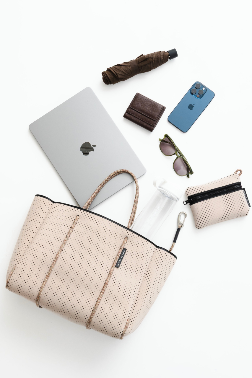 コンパクトなサイズ感ながら、500mlのボトルや長財布が収まる実用的な収納力が魅力。デイリーにちょうどいいバランスで、軽やかに持ち歩けるモデルです。付属の大きめポーチには、お財布やキーなどの大切なアイテムをまとめて収納可能。バッグの中をすっきりと保ちながら、使い勝手の良さも兼ね備えています。必要なものをスマートに収めて、身軽に動きたい日にこそ選びたいアイテム。