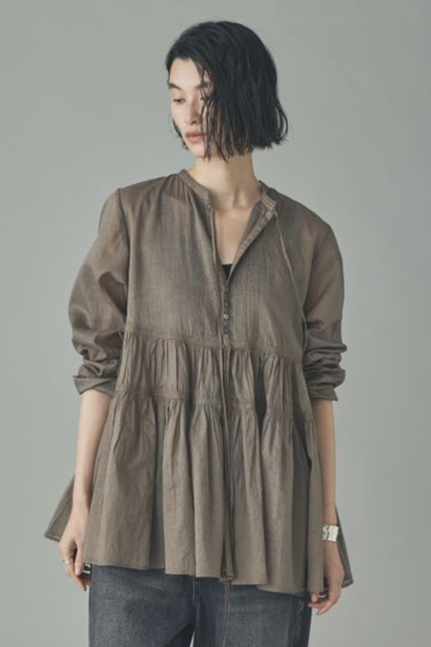 軽やかなシアー感と存在感あるボリュームが際立つオーガンジーブラウス