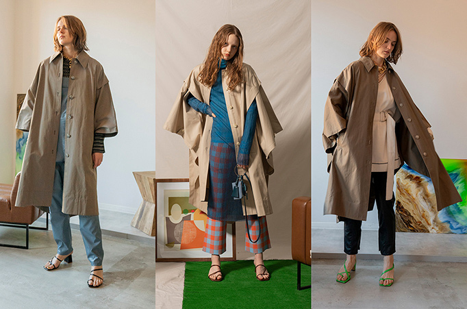 バサッと気軽に羽織れるポンチョコートは、インナーにニットをレイヤードすれば今時期から活躍。高密度に織られたギャバジン素材を使用しているため、ハリ感のあるタフな生地でシルエットのよさも◎。撥水加工を施しているので、天候を気にせずにお使いいただけるのもポイントの一つ。サイドのスリットから腕を出して着たりと「メゾンスペシャル」らしいマルチな着こなしも楽しんでいただけます。