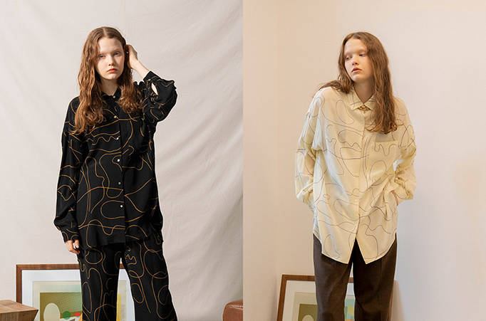 ハンドドローイングしたような抽象的な柄がドレープ性のある生地とマッチした、雰囲気のあるシャツは上品さとリラクシーさを併せもつアイテム。ゆったりとした柔らかい着心地は、おうち時間からお出掛けまでいつでも着ていたくなること間違いなし。