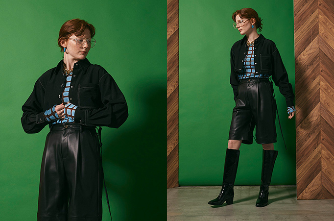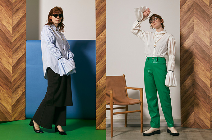 薄手のコットンサテンを使用することで、上品さがありつつもしなやかで着やすさも抜群。大胆な袖のシャーリングとベルスリーブがポイントで、一枚で着て存在感を発揮してくれるのはもちろん、長めの袖丈はスウェットやニット、ジャケットの袖口からベルスリーブのデザインを出してレイヤードを楽しんでいただくのがおすすめです。