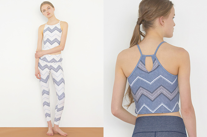 定番のミニマルなデザインにオリジナルTriangle printをのせたショートトップスです。同素材のレギンスは、7分丈とフルレングスからお選びいただけます。