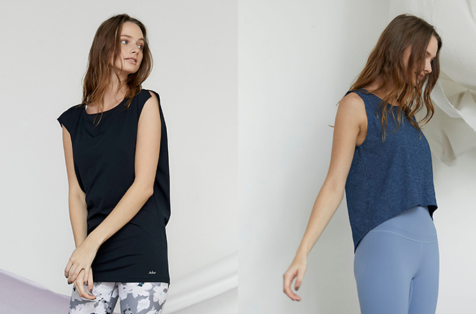 定番の2型は、新色の杢ネイビーが加わりました。UVカット効果と吸汗速乾機能をもち、さまざまなワークアウトシーンで活躍する人気アイテムです。