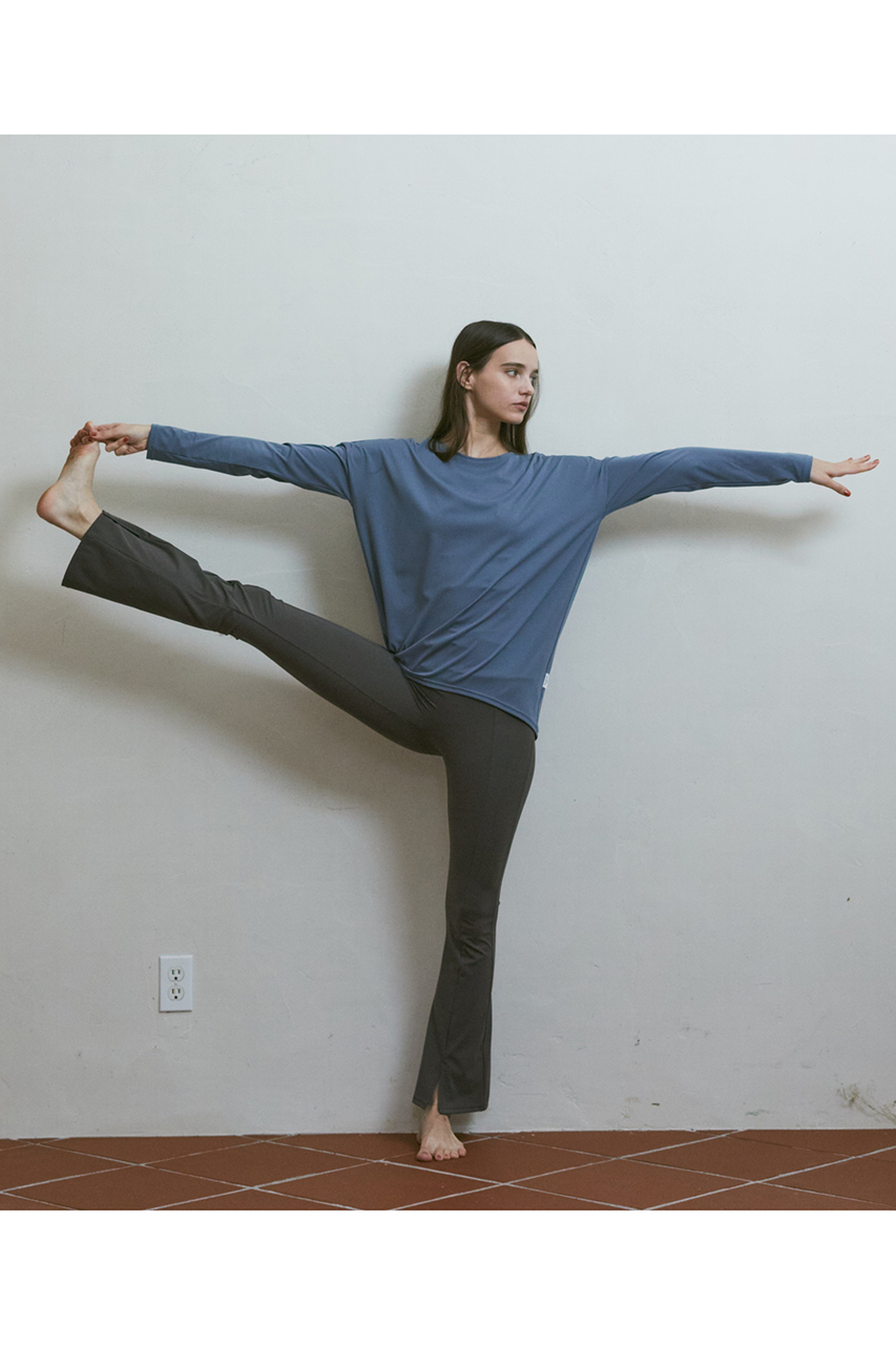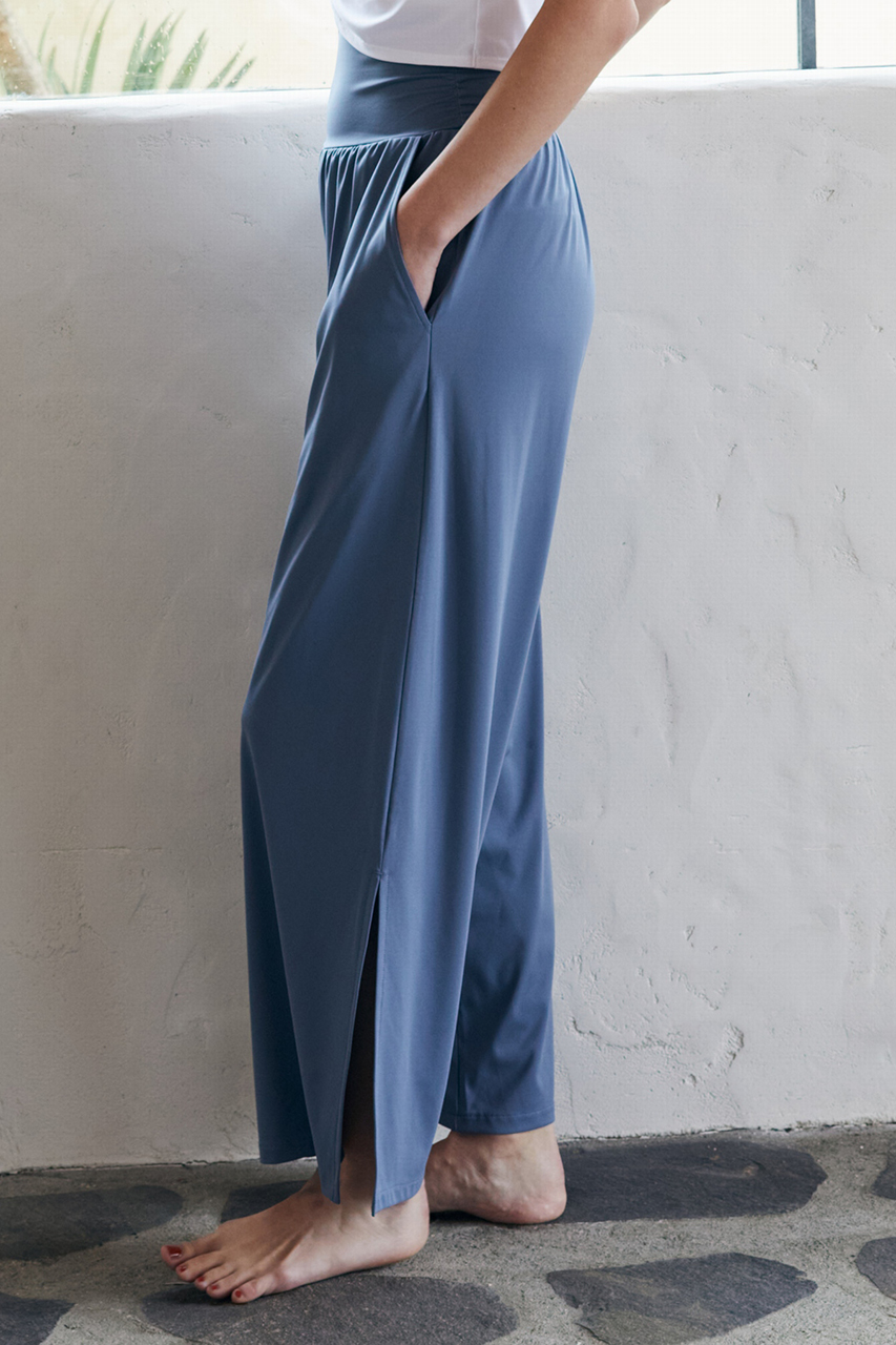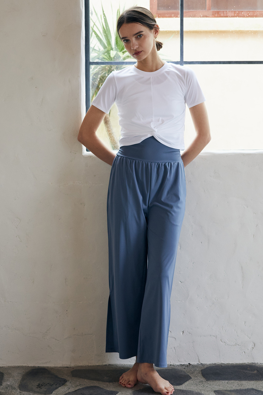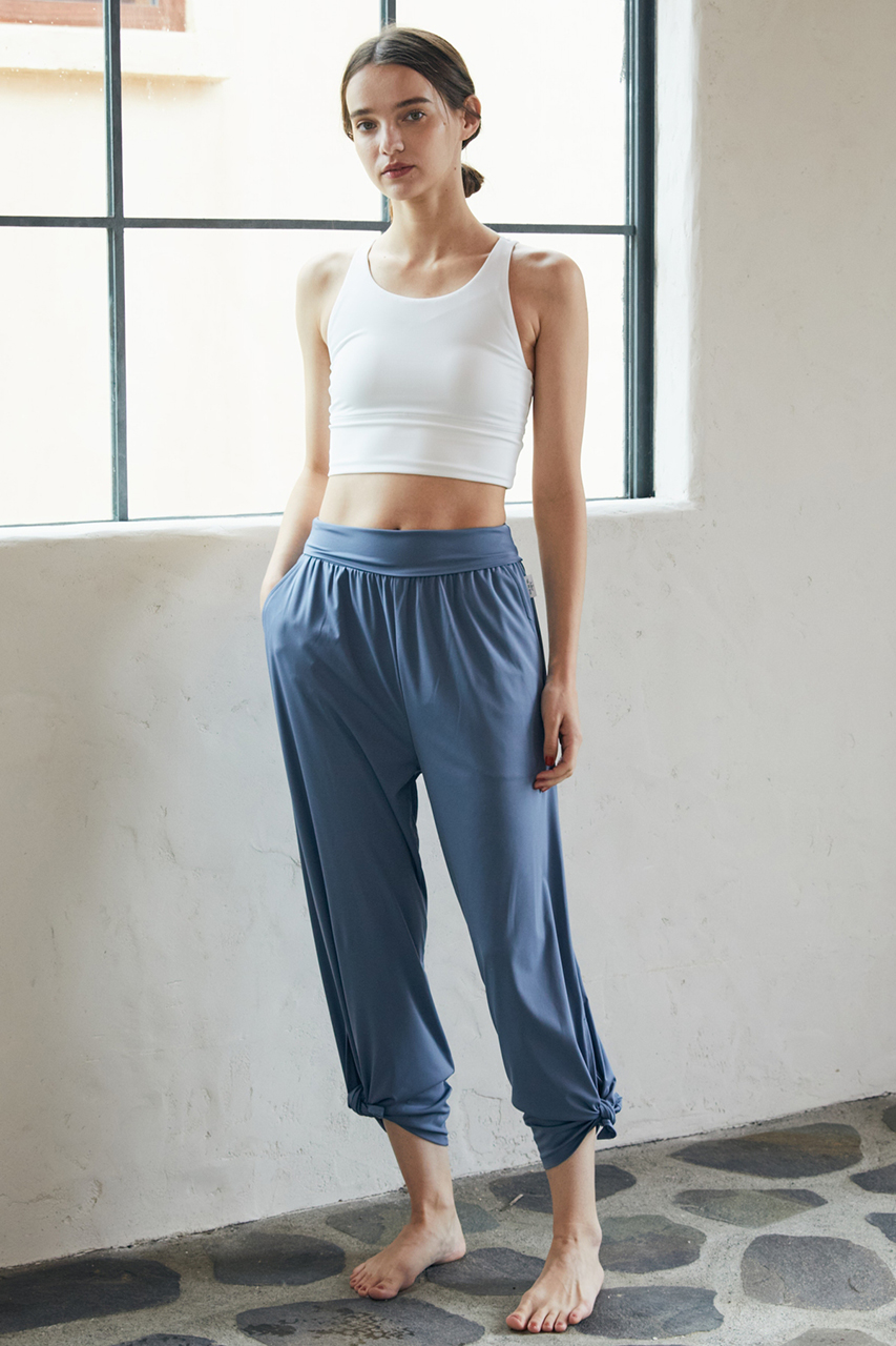 ヨガやワークアウトの行き来は、エレガントなワイドシルエットを楽しんで。アクティブに動きたい時には裾を結んだジョガー風シルエットにチェンジ。