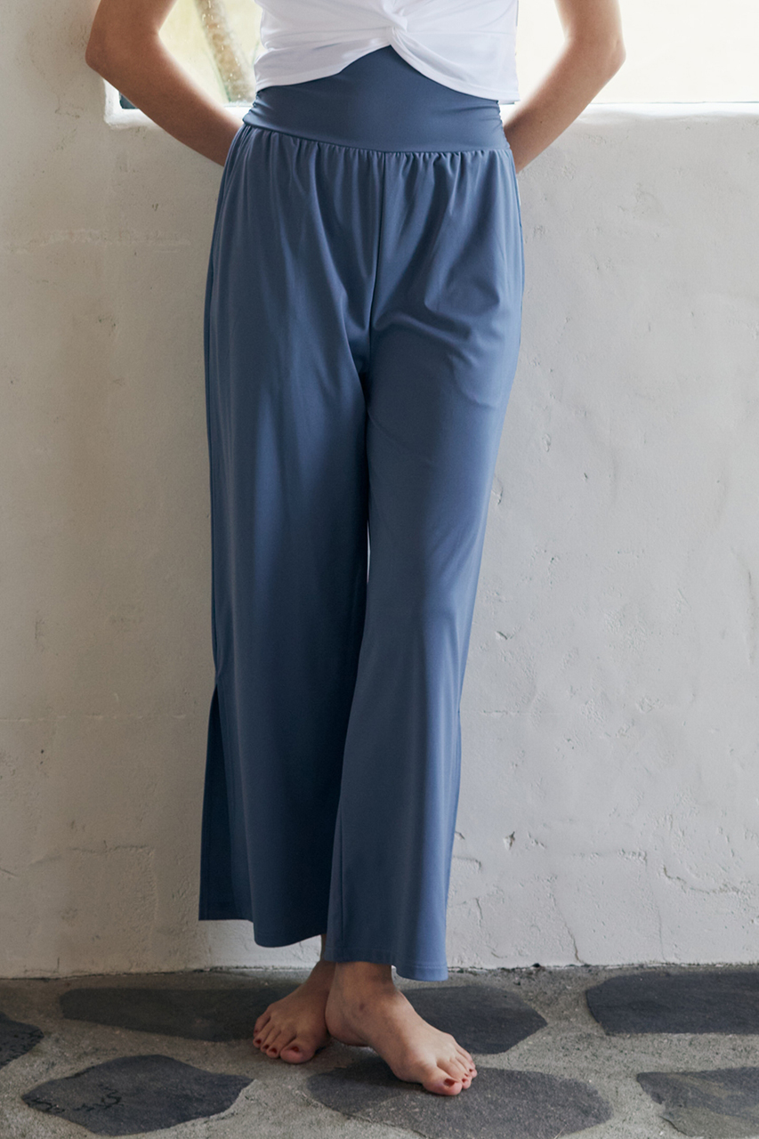 リラックス感のあるワイドパンツは、裾の外側スリットを結んでも楽しめる2way仕様。