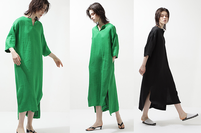 シンプルながらも1枚でサマになるピュアリネンアイテム