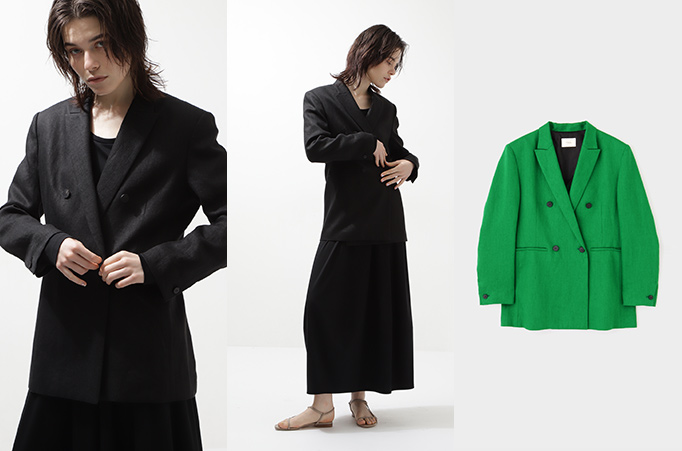 シンプルなノースリーブブラウスは、同素材のジャケットのインナーとして、またスカートとセットアップでコーディネートしていただくとクラス感とヌケ感が漂う鮮度あるスタイルが完成します。