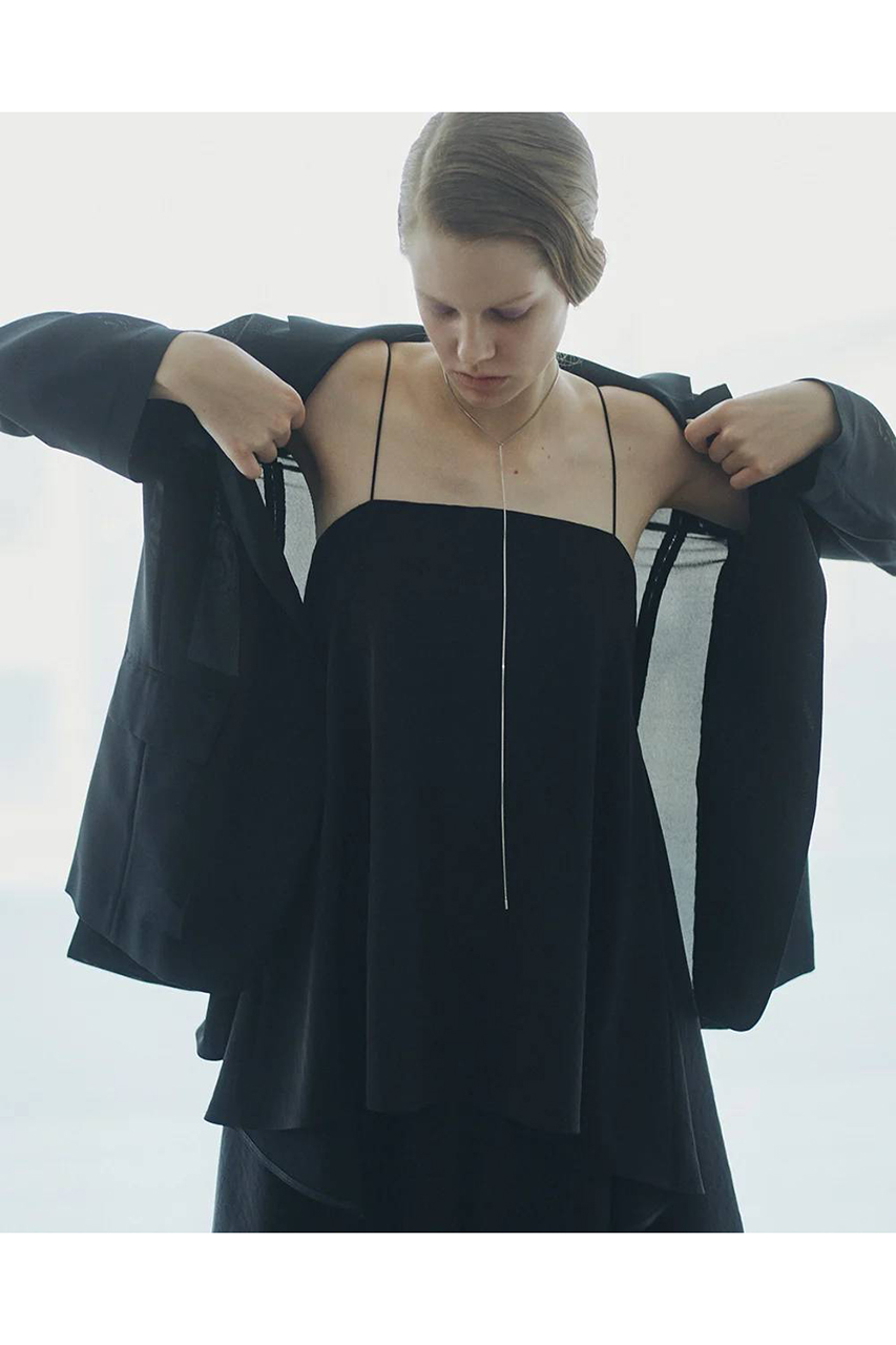 肩を思い切り大きくマスキュリンな作りながら、身体になじむのでカーディガンのように羽織れるのが特徴。