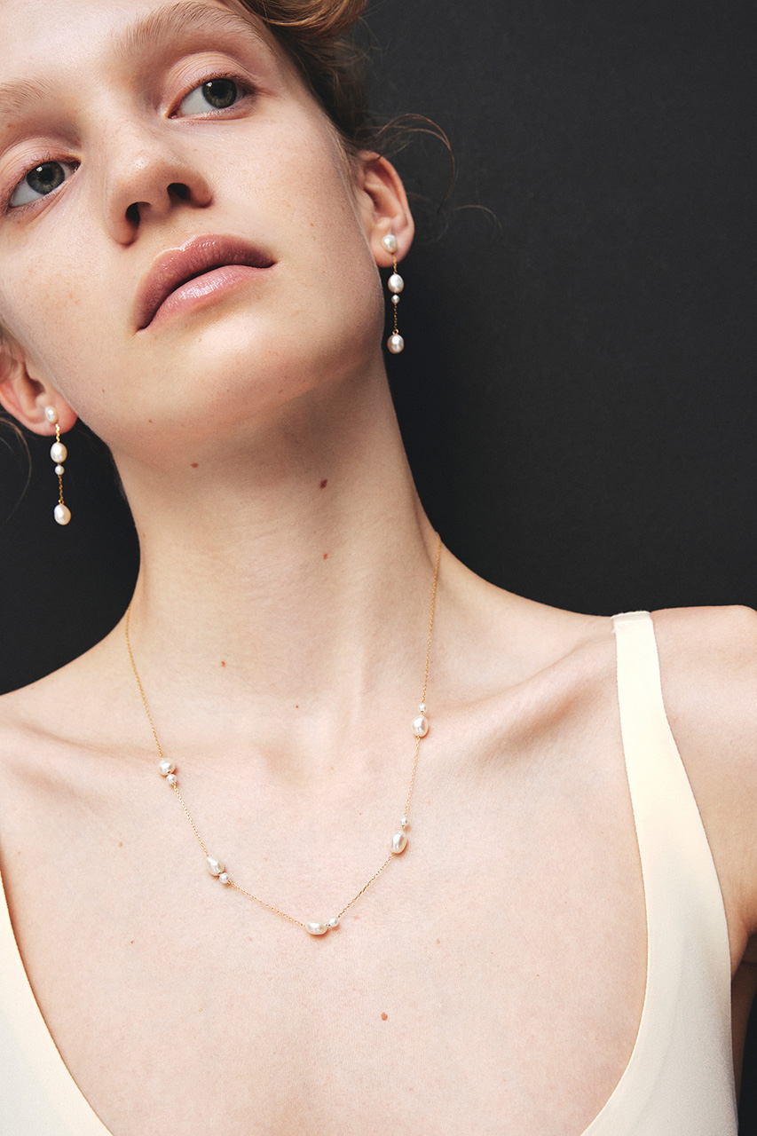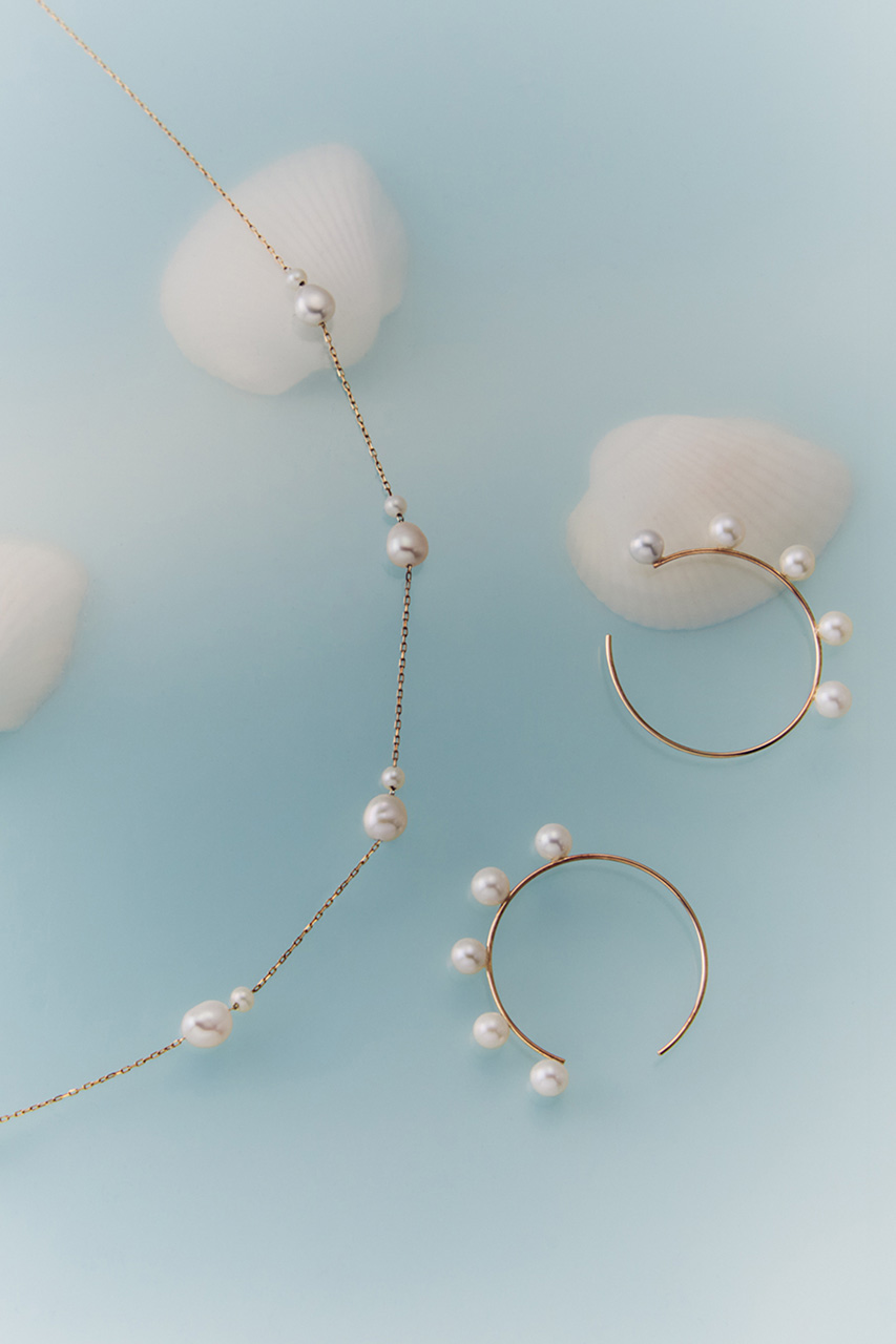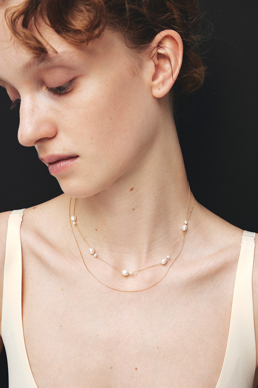 淡水パールとK10チェーンが描く、途切れのない美しいライン