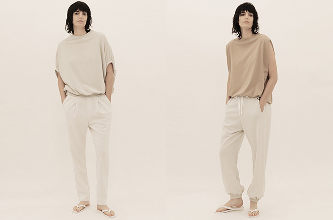 ファーストコレクションからずっと人気のスーパールーズトラウザースに、真夏にも対応できる涼しげな素材をプラスしました。このワイドなトラウザースは、カットソーのリラックス感にやや股上の深いモードっぽさをプラスした一枚。かなり股上が深いので、ウエスト位置の高さの調整で様々なレングスが楽しめます。ウエスト周りはゴムとドローストリングで全く締め付け感がなく、脇線に切替えのないとてもワイドなパンツです。一見布帛の様に見えますが、トリアセテート混の素材を使用しているので、ジャージでもきれいめに見えるのが特徴。非常に落ち感のある素材により、意外なほどほっそりと見えるため、ビッグサイズのトップスとも相性抜群!