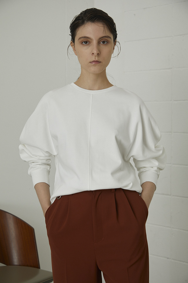 「リムアーク」らしいドルマンスリーブのカットトップス。ほどよい肉厚感のある生地を使用しているためシルエットがきれいで、高見えするアイテム。大人カジュアルなスタイリングで着ていただけます。使いやすい丈感にもこだわり、インでもアウトでもバランスが取りやすい優秀なトップスです。