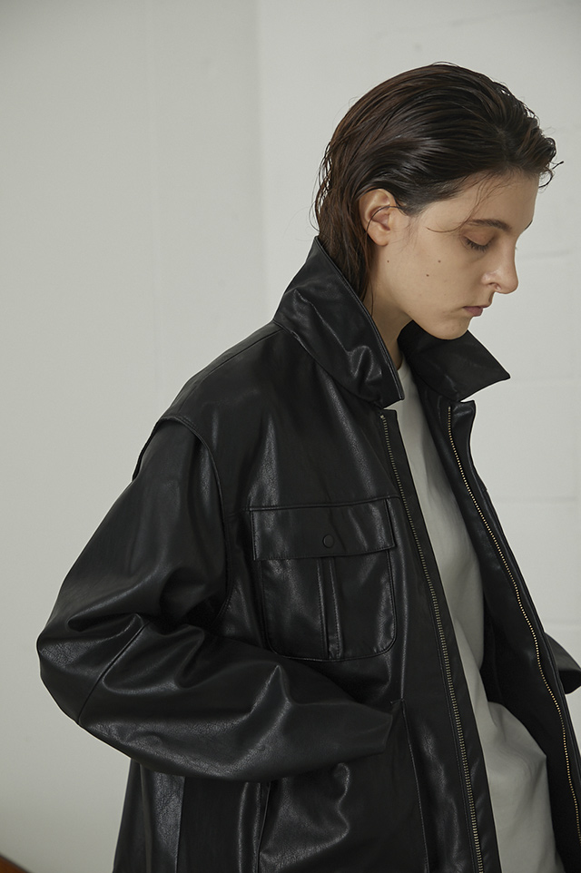 ポケットのディティールや、着やすい丈感にこだわったLeather like JK。立体的なシルエットで、コーディネートをモードに仕上げてくれます。レイヤードしているように見えるアームホールのデザインがポイント。襟を立ててクールに着ていただきたいアイテムです。