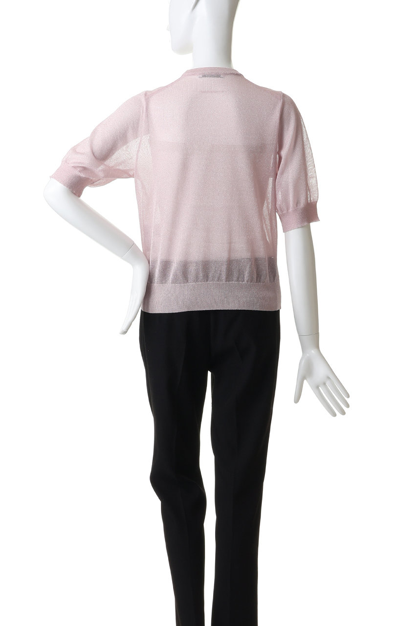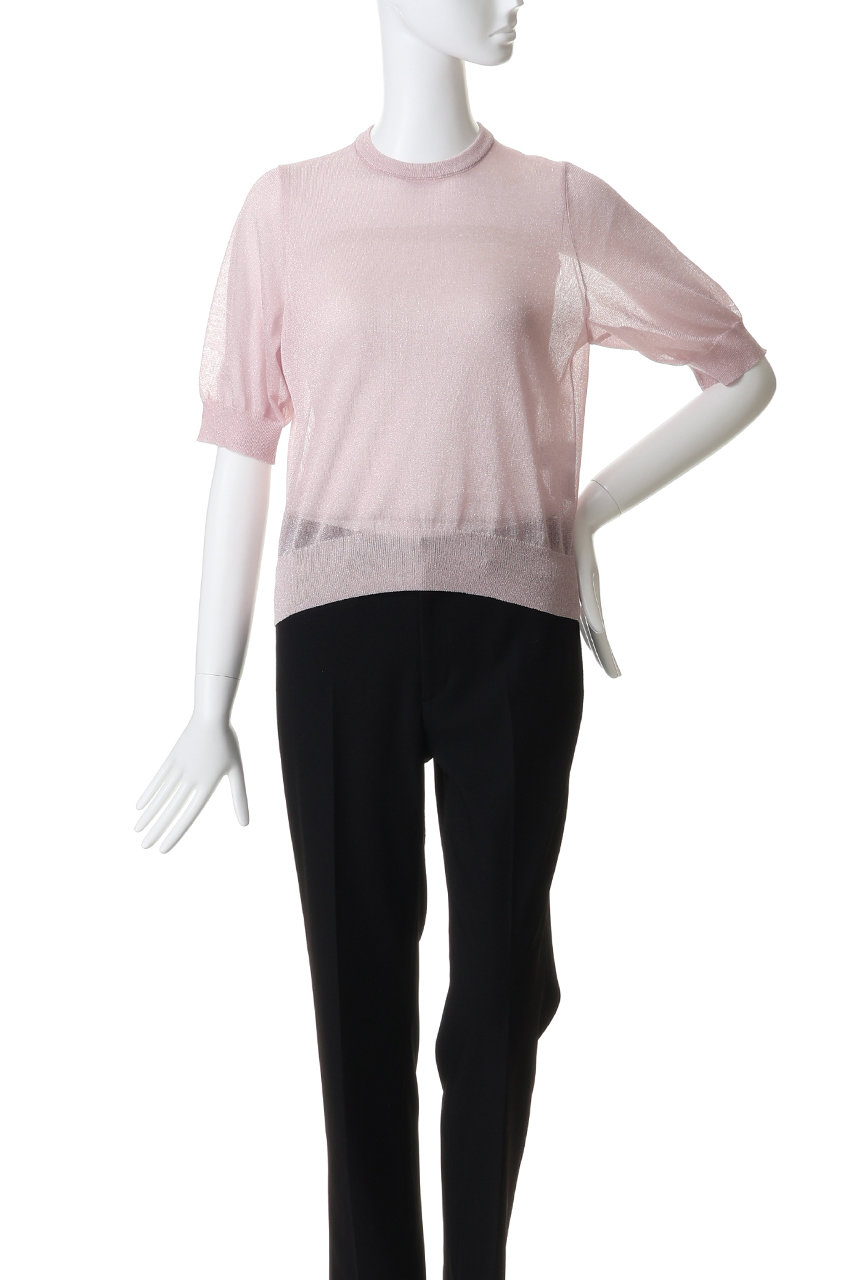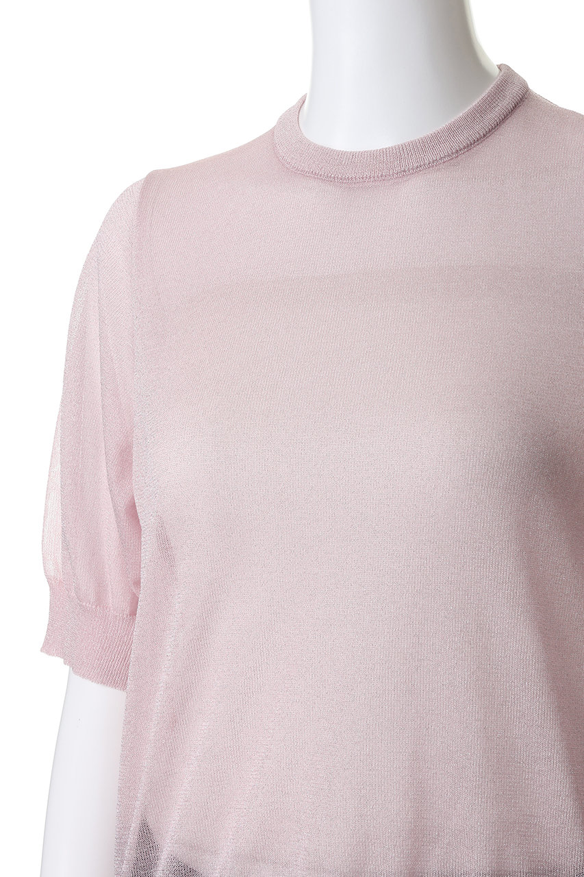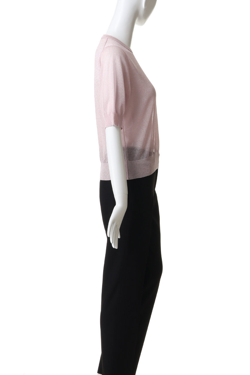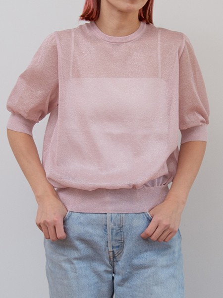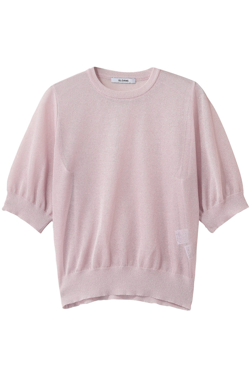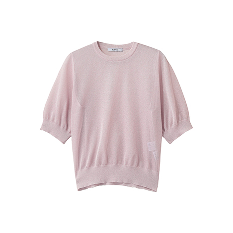 12ゲージ二重臼天竺編みをていねいに編み立てたラメシアー半袖クルーネック。表にはソフトな肌触りのラメ糸を、肌に直接触れる裏には、オーガニックコットン×リサイクルポリエステルの混紡糸を使用し、さらりとした着心地に仕上げました。甘くなりがちなパフスリーブも、繊細なラメのきらめきがほどよいエッジをプラス。やや長めの裾リブは、タックインでもアウトでもバランスよくきまります。デイリーカジュアルから華やかなシーンまで頼れる一着。手洗い可能です