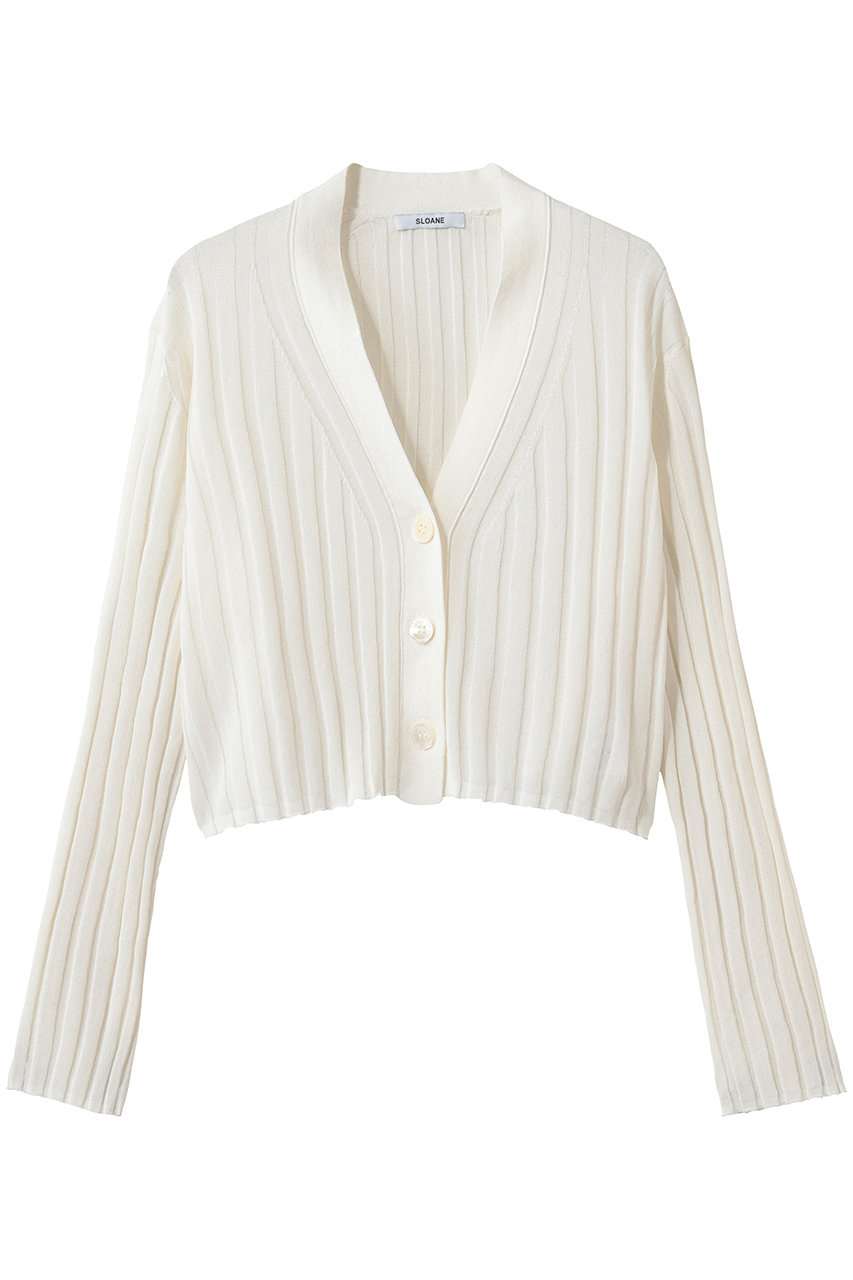 幅が広く大胆な凹凸の出るワイドリブが着こなしにニュアンスをもたらすVネックカーディガン。超極細の和紙とリサイクルポリエステルの撚糸を用いて、14ゲージリブ編みをフルファッションで丁寧に編み立てた1枚。手洗い可能で取り扱いしやすくソフトな風合いで軽量な着心地が手放せない。トレンド感漂うショート丈デザインは、ボリュームボトムとも好相性。