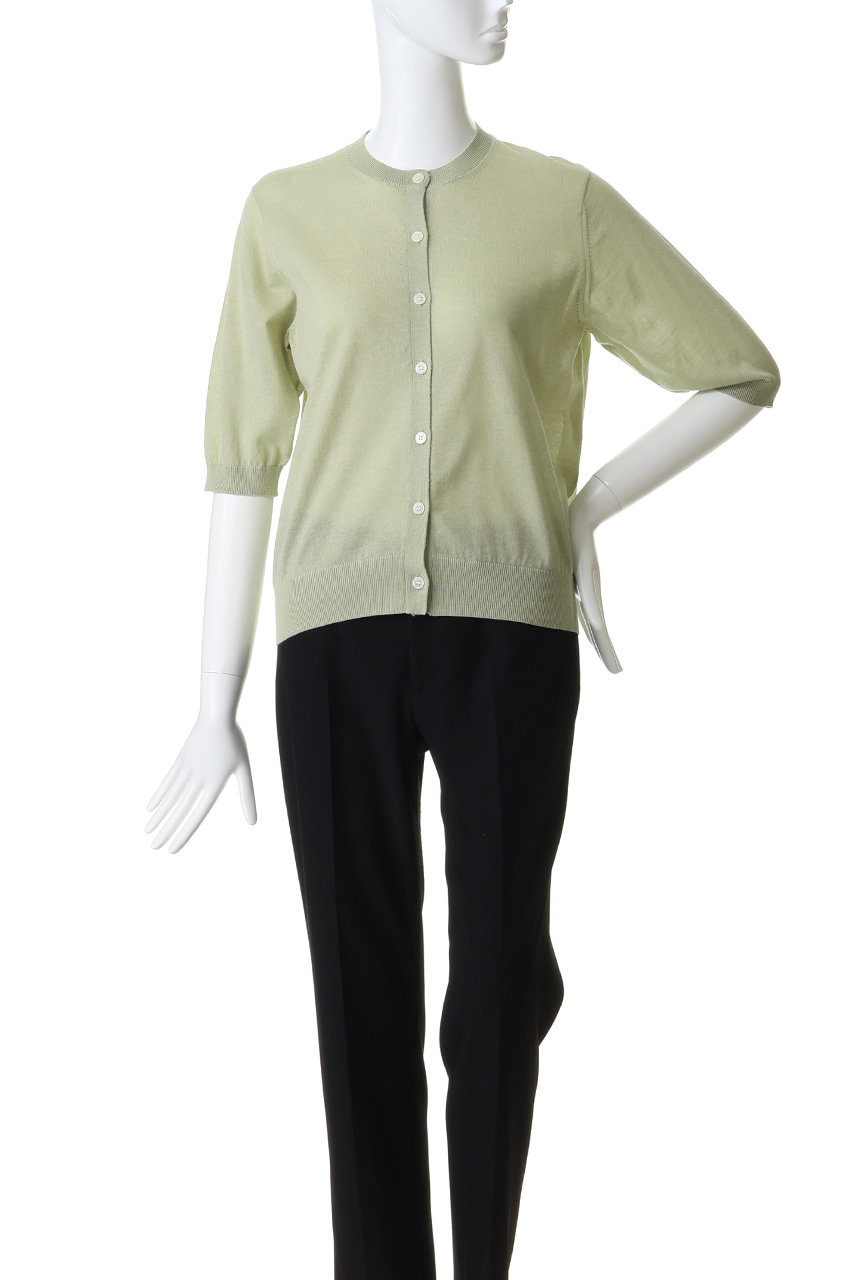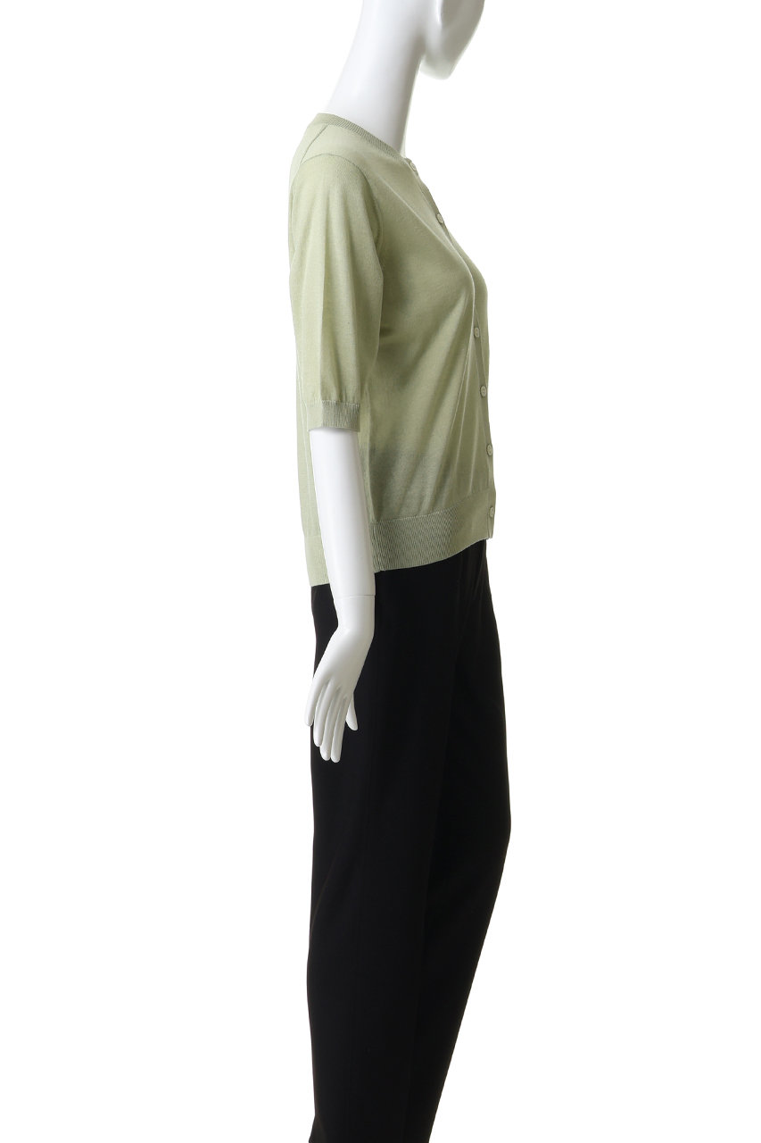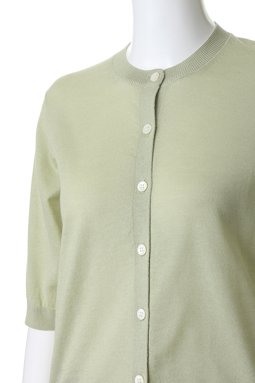 都会のオフィススタイルから休日カジュアルまで溶け込み6分袖のクルーネックカーディガン。16ゲージ天竺編みをフルファッションで丁寧に編み立てたポリエステルとオーガニックコットンの混紡糸を使用。度目を限界まで詰めたドライタッチな表面やはっ水効果、速乾に優れた1枚は、デイリーにヘビロテ必須。トップスとしても着用できるやや短めの着丈で仕上げた、着まわしの頼れる味方。