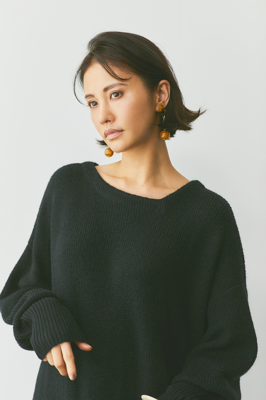 - デコルテラインが上品な大人のカジュアルニットワンピース