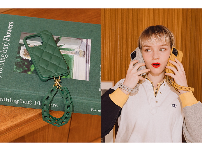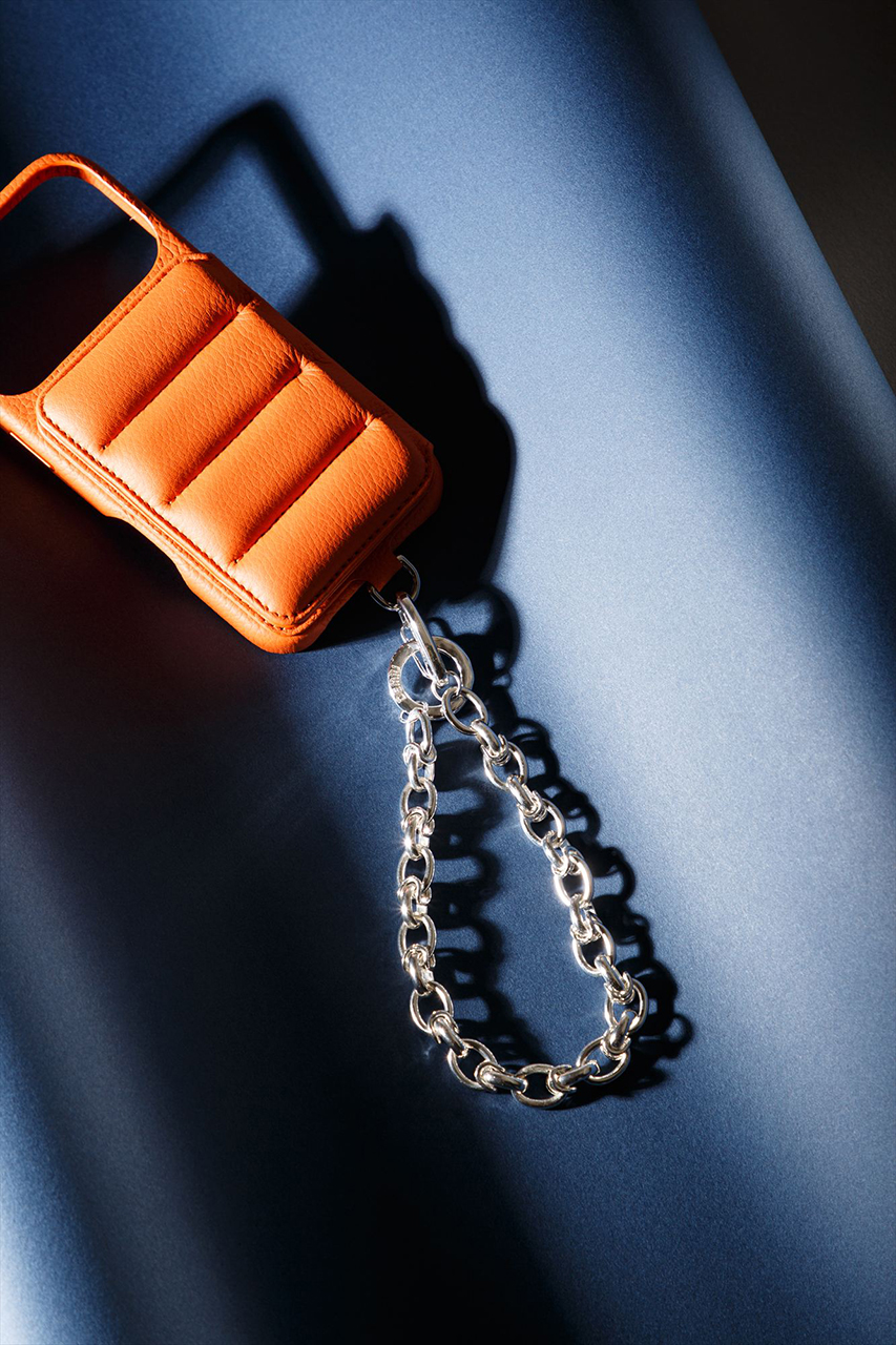 程よい幅感と柔らかな質感が特徴で、カジュアルにもきれいめにも合わせやすいデザイン。スマホショルダーやブレスレットチェーンとして使え、世代を問わず人気。オリジナルDカンでDEMIUケースに簡単着脱可能。