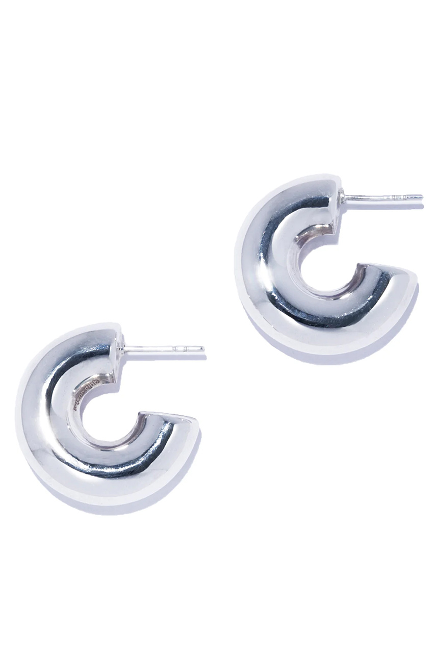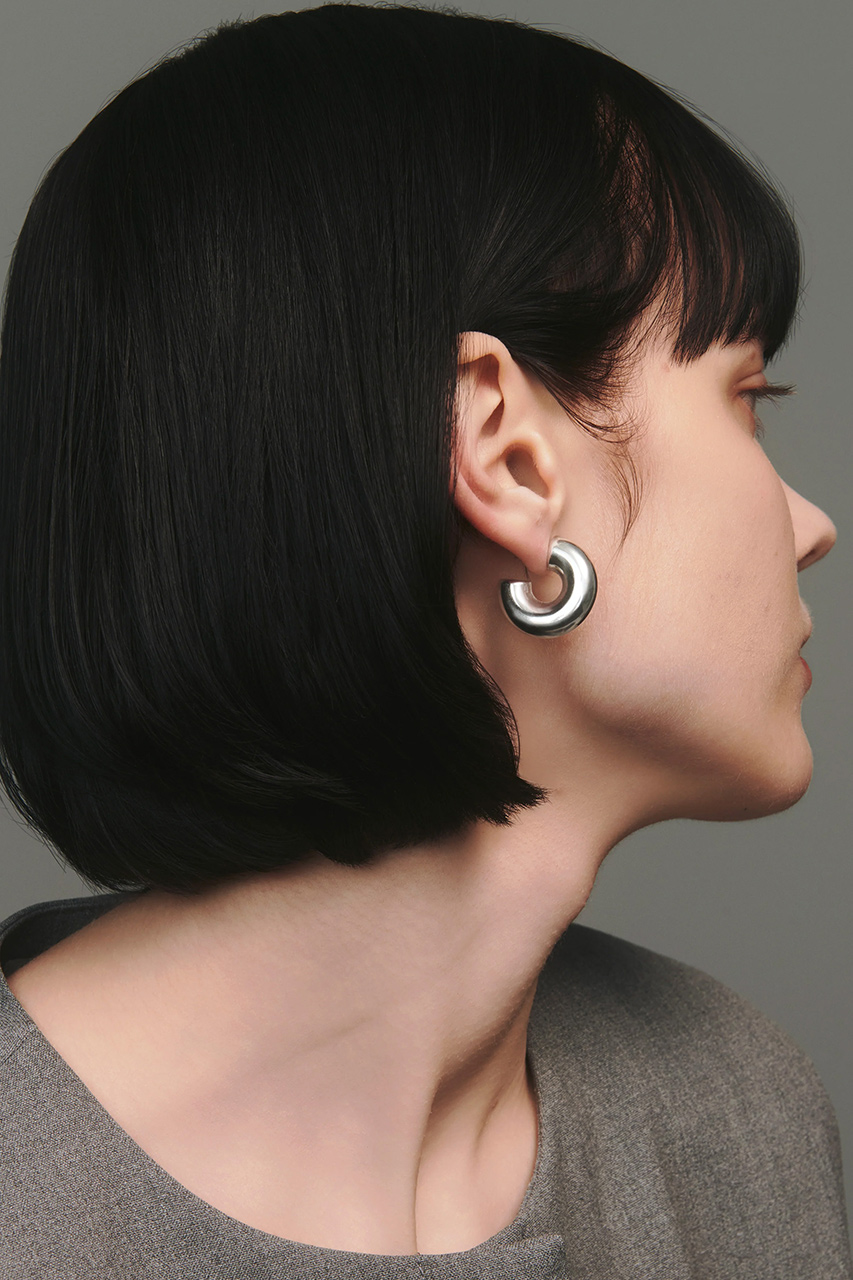 ボリュームと立体感を備え、光の角度によって表情を変えるシルバーピアス。耳元に静かな奥行きをもたらします。ぷっくりとしたフォルムが柔らかさを感じさせる一方、シルバー特有の艶やかな光沢が凛とした強さを演出。