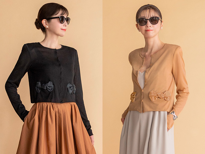 極上の肌触りと、リボンがアクセントになる軽やかな表情が魅力のエアリーカーディガン。