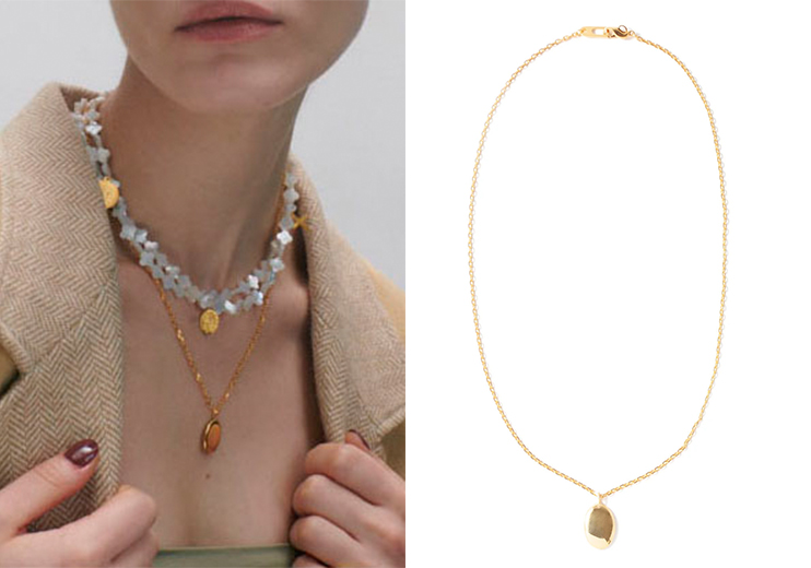 やわらかな光をたたえたゴールドが、デコルテに静かな余韻を残すオーバルコインネックレス。ミニマルでいて、どこか詩的。さまざまなスタイリングに溶け込み、重ねづけで表情を変えるのも魅力。スタイルに“品のある強さ”を添える一本です。