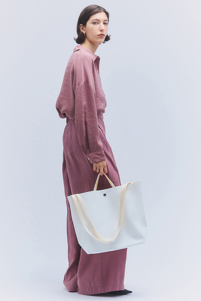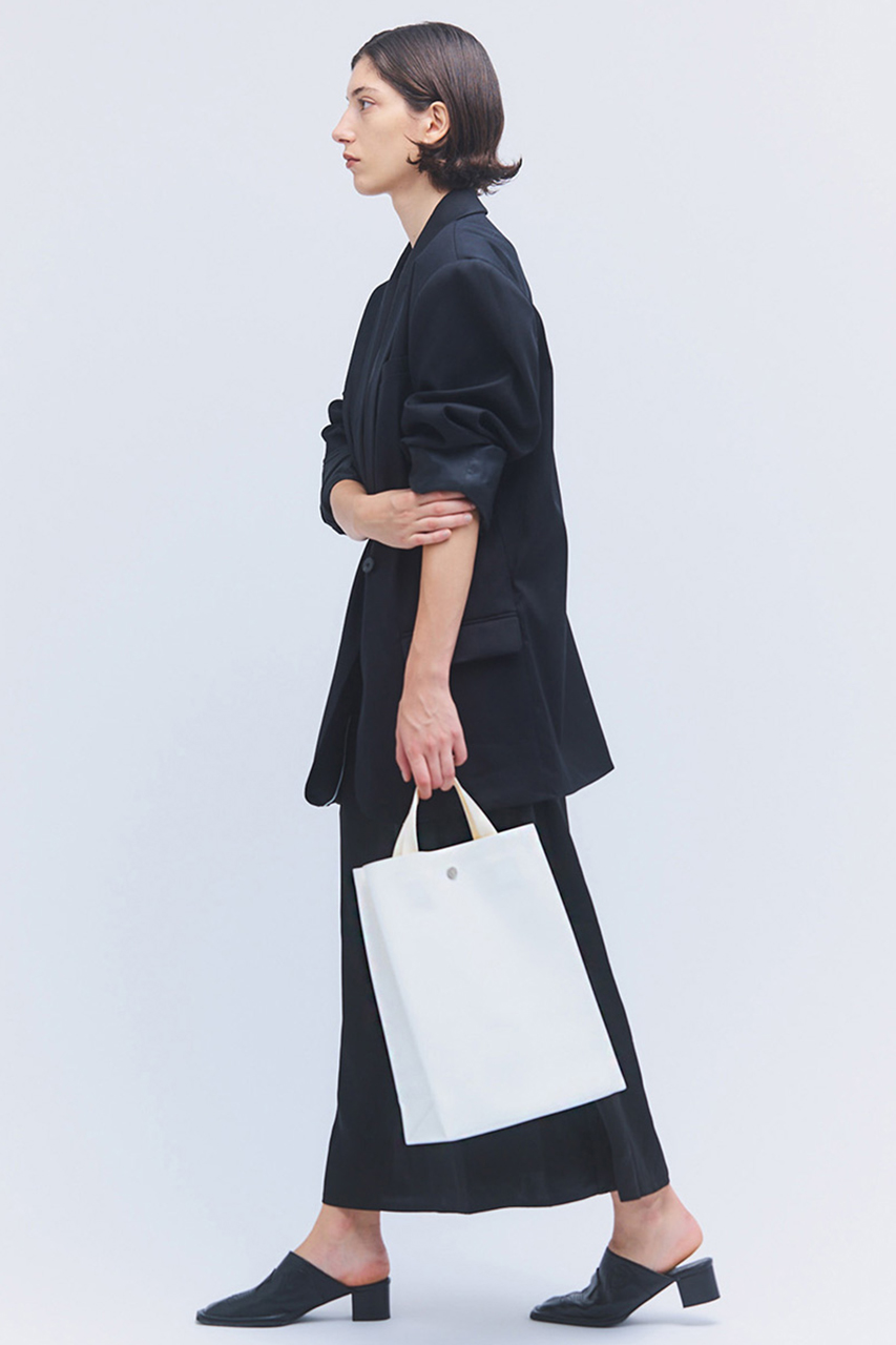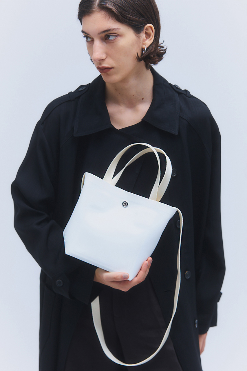 今季新作の「PAPER E」は、A4やPCを収められる容量ながら、奥行き7cmのスリムなシルエットが特徴。電車移動やカフェワークなど、コンパクトに動きたい日にもスマートに馴染みます。ハンドルとショルダー、2種の持ち方でシーンを選ばず使える設計。凛としたフォルムが、日々の装いをモードに引き締めます。