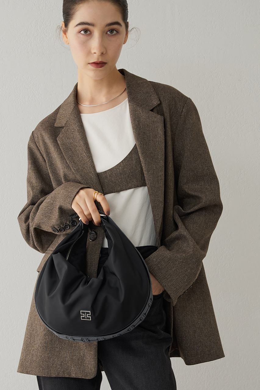 「ナイロン」というとカジュアルライクな印象を持たれる方も多いですが、実はリモンタナイロンは上品かつ女性らしい柔らかな雰囲気にも仕上げてくれます。カジュアルなスタイリングは少しレディライクに、きれいめスタイリングにはスタイリッシュさをプラスして、コーディネートのバランスを取ってくれる存在。