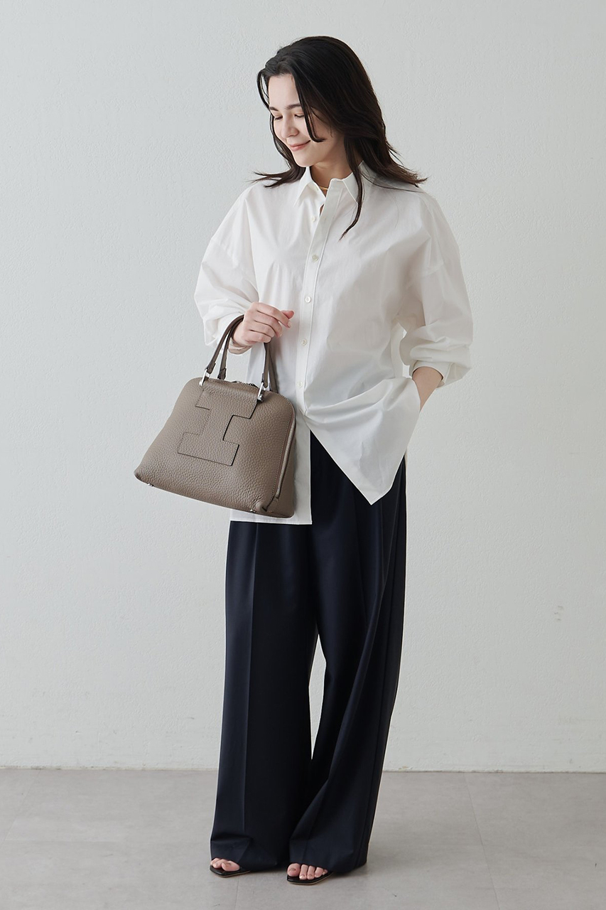 程よい存在感でスタイリングを引き締めてくれる、バランスのよいデイリーバッグ。シンプルなデザインに上質な素材感が映え、きれいめにもカジュアルにも自然と馴染みます。