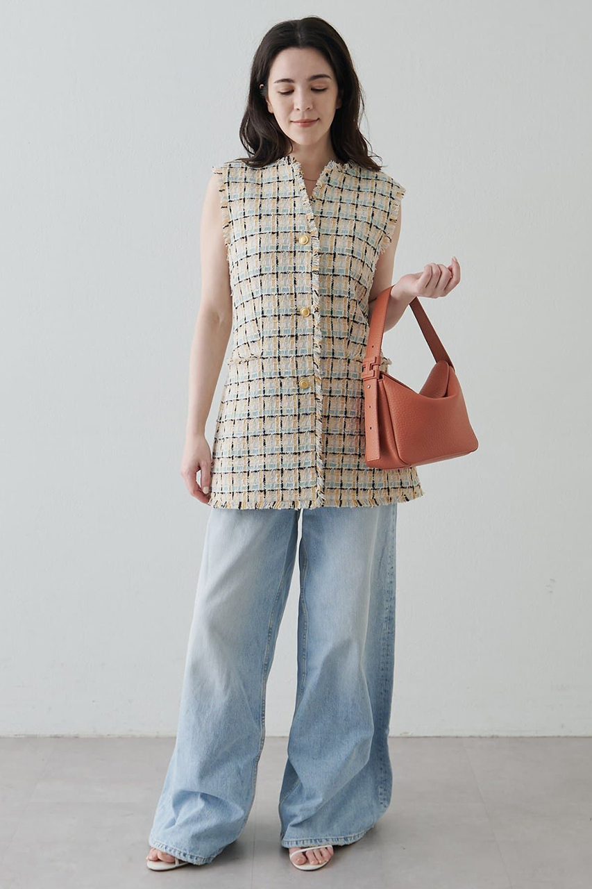 軽やかな素材感で、日常に取り入れやすいデイリーバッグ。程よくカジュアルな表情を持ちながらも、すっきりとしたフォルムが上品さをキープし、スタイリングに自然と馴染みます。
