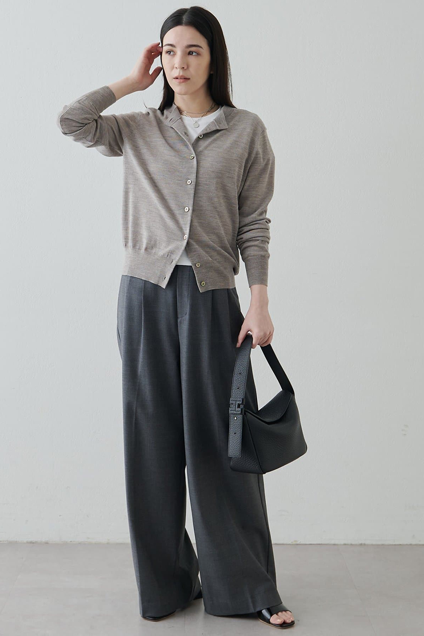 上質な素材感と無駄のないシンプルなデザインが、スタイリングに自然と馴染みながら上品さを引き立てます。