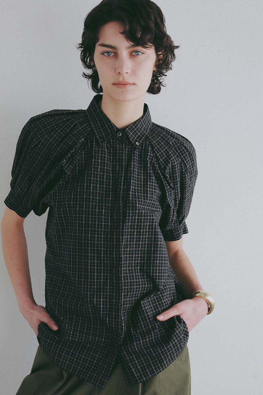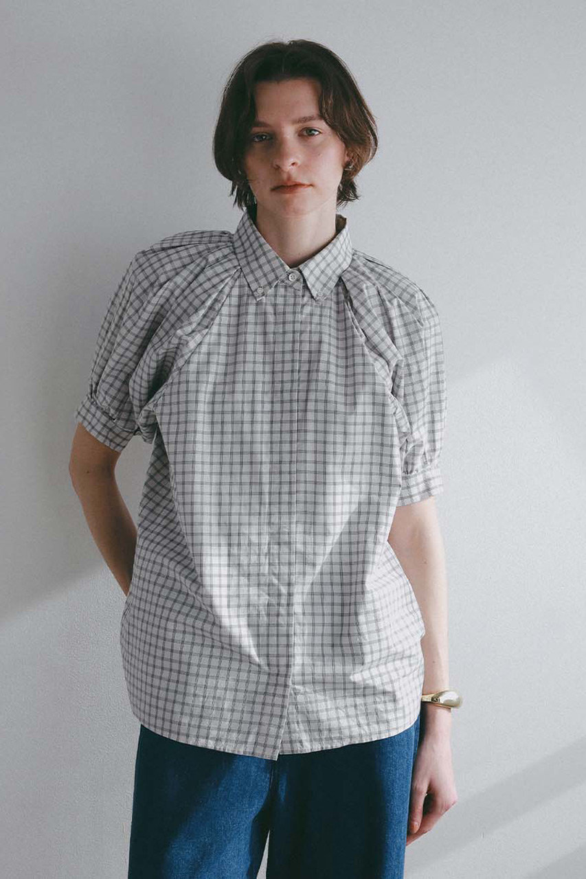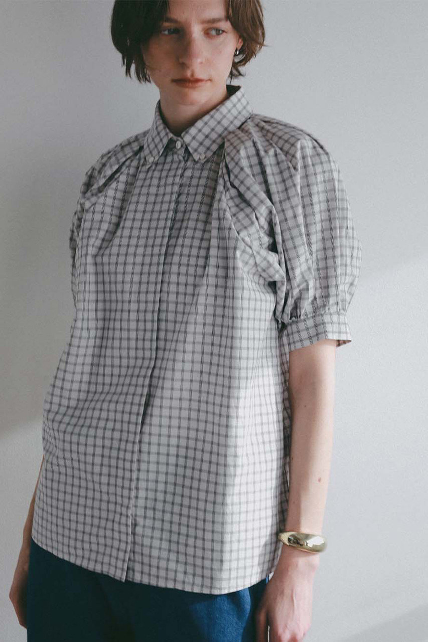 「ショルダータックチェックブラウス」