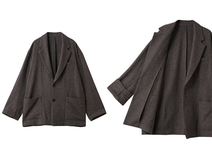 ジャケットの印象が残るよう肩周りの仕様、ラペル、着丈、袖丈を設定して、気軽に羽織れるのに、きちんと感も演出できる万能もの。