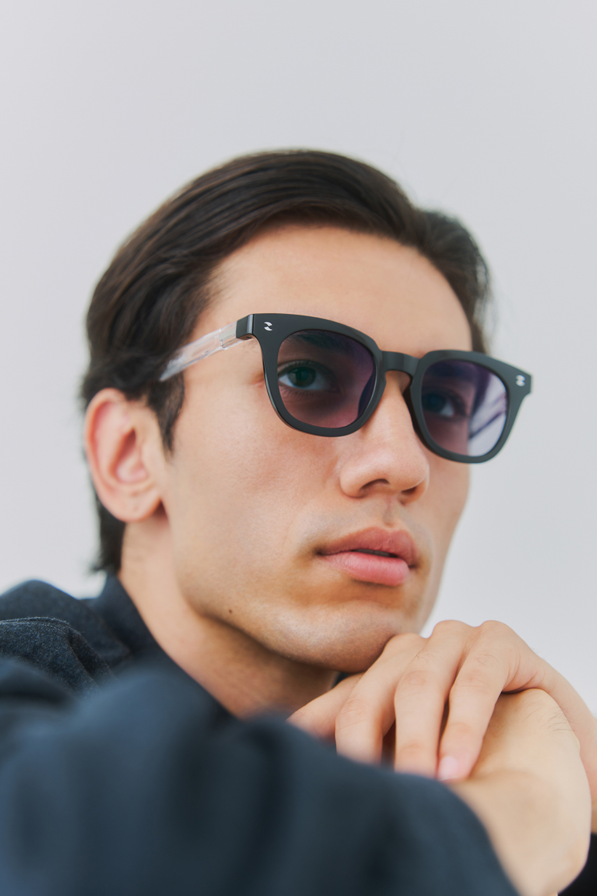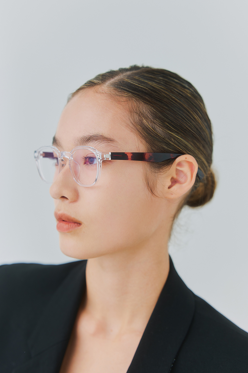 透明度の高いレンズ、両面反射防止コート、紫外線で色づく調光レンズなど、機能面も抜かりなく。忙しく過ごす大人の毎日を、自然と支えてくれる一本です。