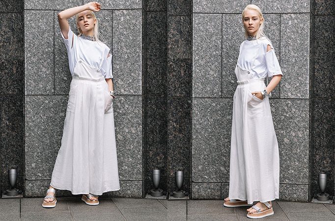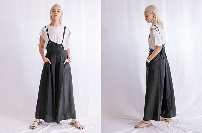 これからの季節に着まわしたい、涼しげなワイドシルエットのコンビネゾン。さらりとした風合いのリネン混再生繊維(テンセル)生地を使用。脇とポケット部分に透け感のある素材を使用し、軽やかさをプラスしたデザイン。ウエストの後ろ部分はゴム仕様なのでストレスフリーに着用でき、さらにハイウエストのデザインでスタイルアップ効果も! 小物次第で色々なコーディネートが楽しめるアイテムです。