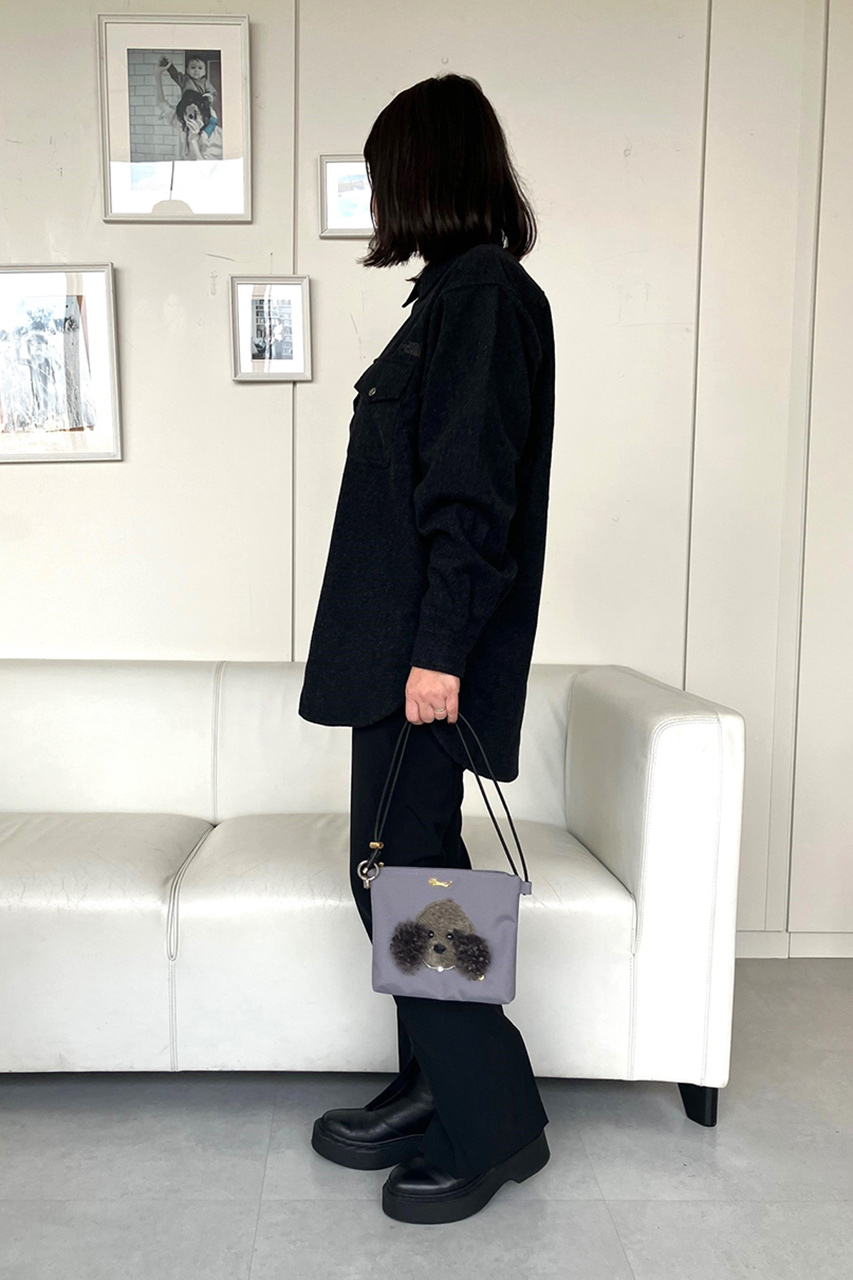 ふわふわの毛並みでとてもかわいいトイプードルのお顔のアップリケと足跡型のカシメがポイントのサコッシュ。カラビナ付きなのでサコッシュとしての用途以外にも、チャーム的にバッグインバッグのポーチとしても◎。素材は撥水性と耐久性に優れたナイロン素材を使用。持ち手の紐は長さ調整ができ、ルックチェンジが楽しめます。