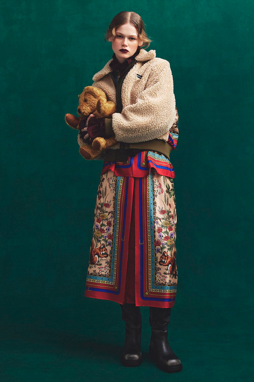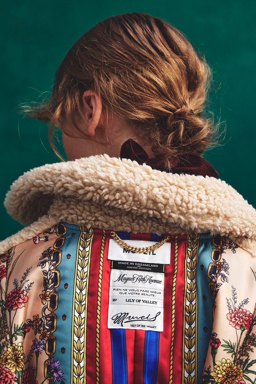 コンパクトな丈感のボンバージャケット。衿はボア生地を使用し、表側身頃は丈夫で上品な光沢感のナイロン生地、裏側にはウールをブレンドしたボア素材とリスを描いたMUVEILオリジナルスカーフプリントのドッキングで華やかに。気分に合わせてリバーシブルでお楽しみいただけます。
