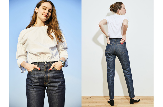 パリッとセンタープレスの効いたリジットデニム(未加工)のアイビージーンズ。人気のベイカーパンツとジェネラルジーンズの良いところを凝縮したデザイン。くるぶし丈のレングスでスタイリングのバランスが取りやすく、脚がきれいに見えるようにパターンにこだわって設計。センタープレスを入れることで縦のラインが強調され、すっきりとした印象でバックスタイルも美しいジーンズに仕上げています。肉厚のデニムはホールド感が増して、スタイルアップ効果も。耳付きの生地なので、着用していくうちにサイドのアタリもしっかりと付き、オリジナルの風合いが楽しめます。秋になったらジャケットや、ニットを合わせた上品なコーディネートと相性が良さそう。はきやすいフォルムにしているので、ベイカー好きの方にもおすすめのジーンズです。