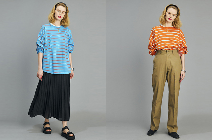 無数のカラーコンビネーションから古着っぽいカラーリングを意識して、配色・ピッチ共にオリジナルで編み立てたマルチボーダーT。シルエットはカジュアルになりすぎないよう、モダンな仕上がりに。着ているだけでハッピーな気分になれるカラーリングは全部で3色展開。カラーによって雰囲気が違うので、合わせるボトムを考えながら選ぶと自分に合うカラーが見えくるはず!