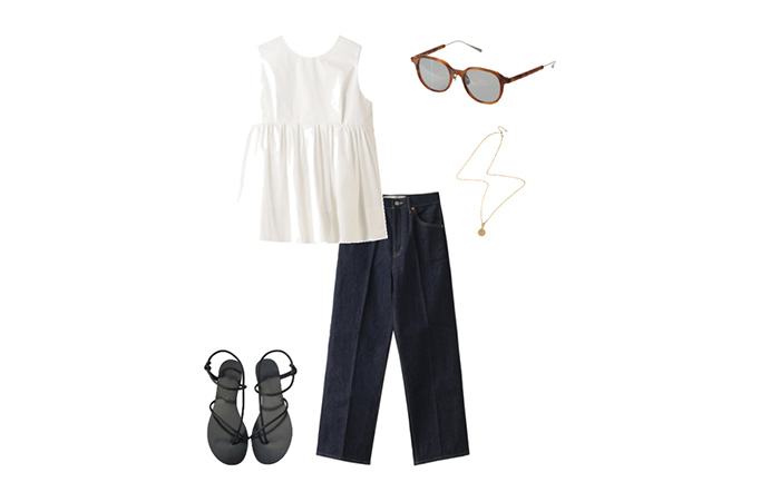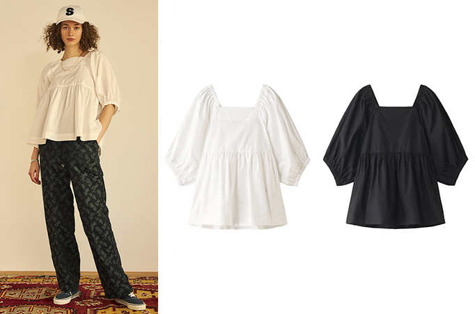 胸元で切り替えたギャザーブラウス。前後2WAYで着用でき、気分やシーンによって着まわしを楽しめるアイテムです。シンプルにデニムと合わせても◎。