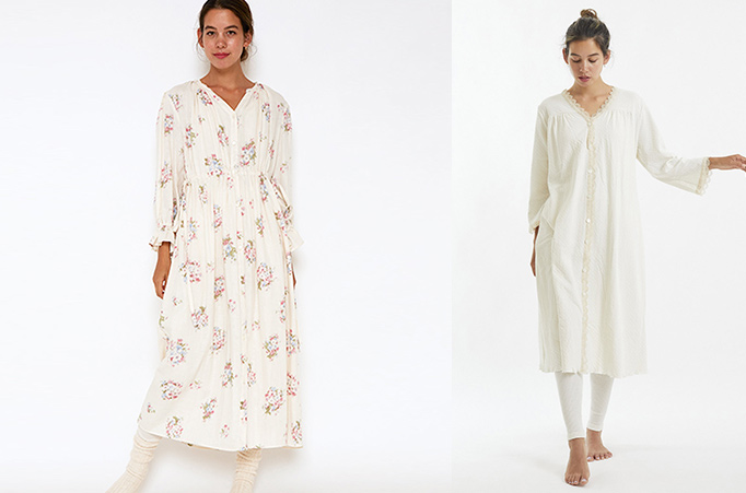 前開きのガウンタイプのドレスは、さっと羽織れるのがポイント。素肌に優しく寄り添うオーガニックコットンを使用し、通気性がよく、肌を快適に保ってくれます。華やかなフラワープリントや、アンティーク調のレース使いなどで、気持ちも晴れやかにしてくれるリラックスウェアです。