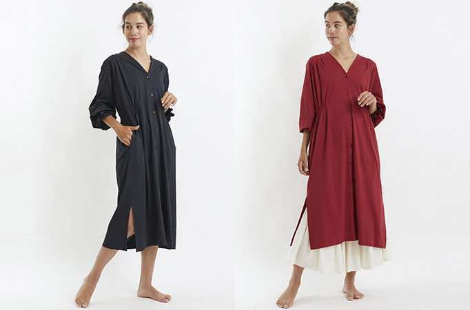 ワンピースとしても、羽織っても。心地よく、きちんと見えるワンピースです。サテンのようになめらかな生地に仕上げた光沢のある生地感で、コットンボールを1つ1つ手摘みで収穫した、稀少性の高いオーガニックコットンを使用しています。