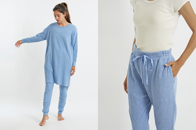 ファッションディレクター岡本敬子さんとつくる、「ナナデェコール」のKO collectionは、大人っぽく着られるシンプルなシリーズ。中綿入りのコートはふわっと軽いので、ガウンとしても外でも活躍しそう。キルティングパンツもふわりと空気を含んで温かです。洗うほどとろける人気素材、リラックスコットンシリーズもシンプル派の方のお部屋着にも、パジャマにも。