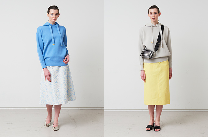 毎シーズン人気のニットのセットアップ。今期はパーカーと女性らしいフレアスカートのセットアップが登場しました。