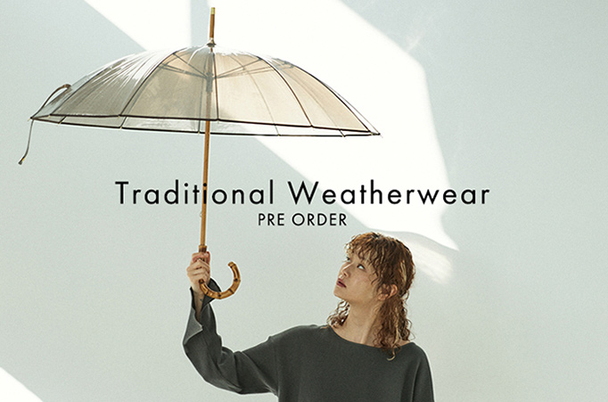 毎シーズン人気を集める【Traditional Weatherwear(トラディショナル ウェザーウェア)】から 、雨の日のお出かけも楽しくなるようなレイングッズが登場! ブランドを代表するバンブー持ち手のリュクスなビニール傘と、ブルゾン感覚で着用できてパッカブルなケープ型レインコート、きちんと感のあるローファーデザインのレインシューズをご用意いたしました。