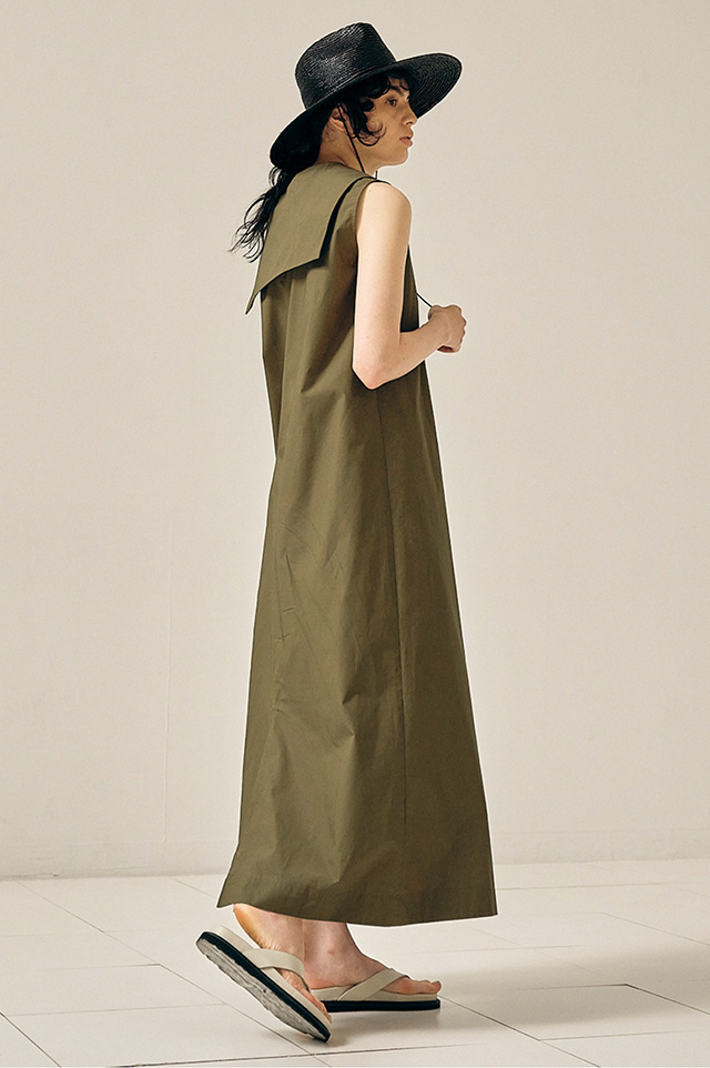遊び心くすぐるセーラーカラーが目を惹くワンピース。着丈はしっかり長さがあり、バックスリット入りなので足さばきのしやすいデザイン。シャツのようなハリのある素材できちんと感を持ち合わせ、セーラーカラーを大人顔にシフトして着ていただけます。