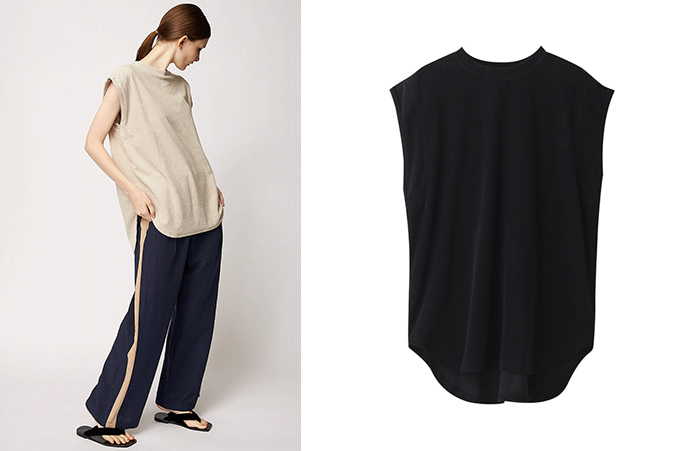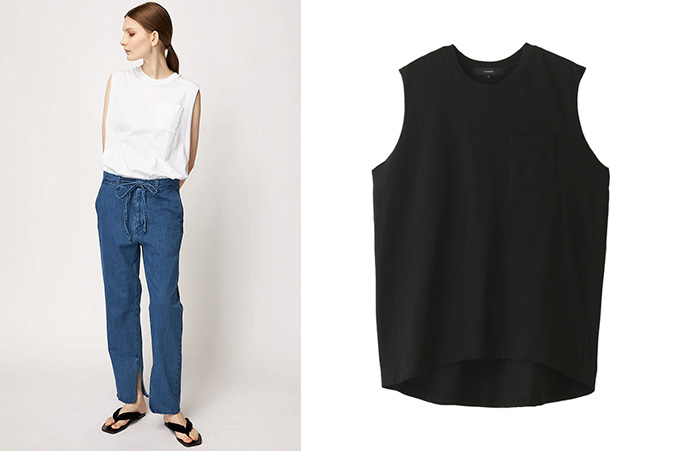 柔らかな風合いのノースリーブネックカットソー。ポケットTシャツの袖をカットしたイメージで仕上げ、インナー使いはもちろん、夏に向けて1枚でも活躍するします。ほどよい着丈と、ボディラインを拾わない身幅のバランスで仕上げています。