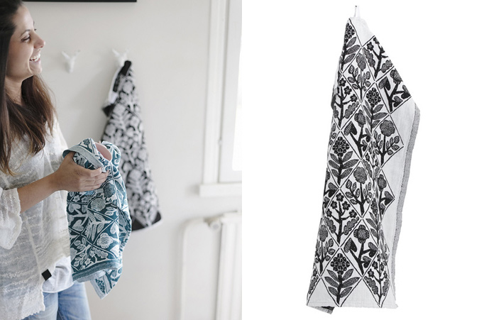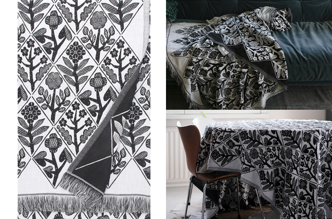 フィンランド語で「花々」を意味するKUKAT。ウォッシュドリネンとコットンの混合素材により、まるで手描きのような繊細な描写を可能にしただけでなく、速乾性、吸収性の機能面にも優れています。深みのあるペトロリウムと、モノトーンがシックな印象のブラックの2色展開です。表と裏、2面違った表情になりますので、2タイプお楽しみいただけます。